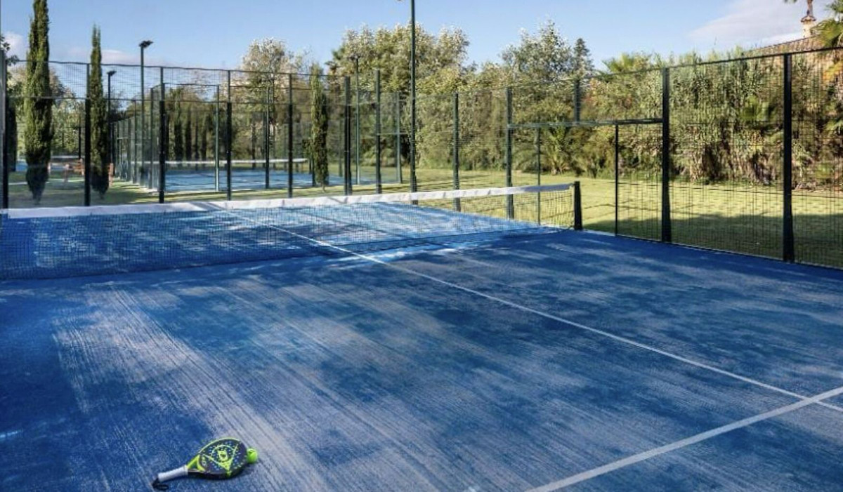 Three swimming pools, tennis and paddle courts, and a children’s play area.