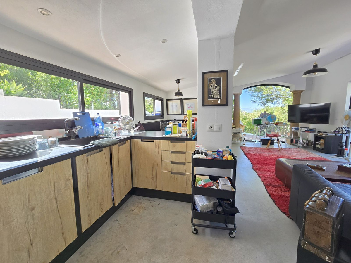The main house, full of character and warmth, features four spacious bedrooms, four bathrooms, large living areas and sunny terraces with panoramic views. Two charming guest houses add further value, each with a bedroom, kitchen, good living space and private terrace – ideal for visiting family, holiday rentals or creating a boutique B&B. One of the casitas even offers space for its own pool, making it a highly attractive option for future guests.