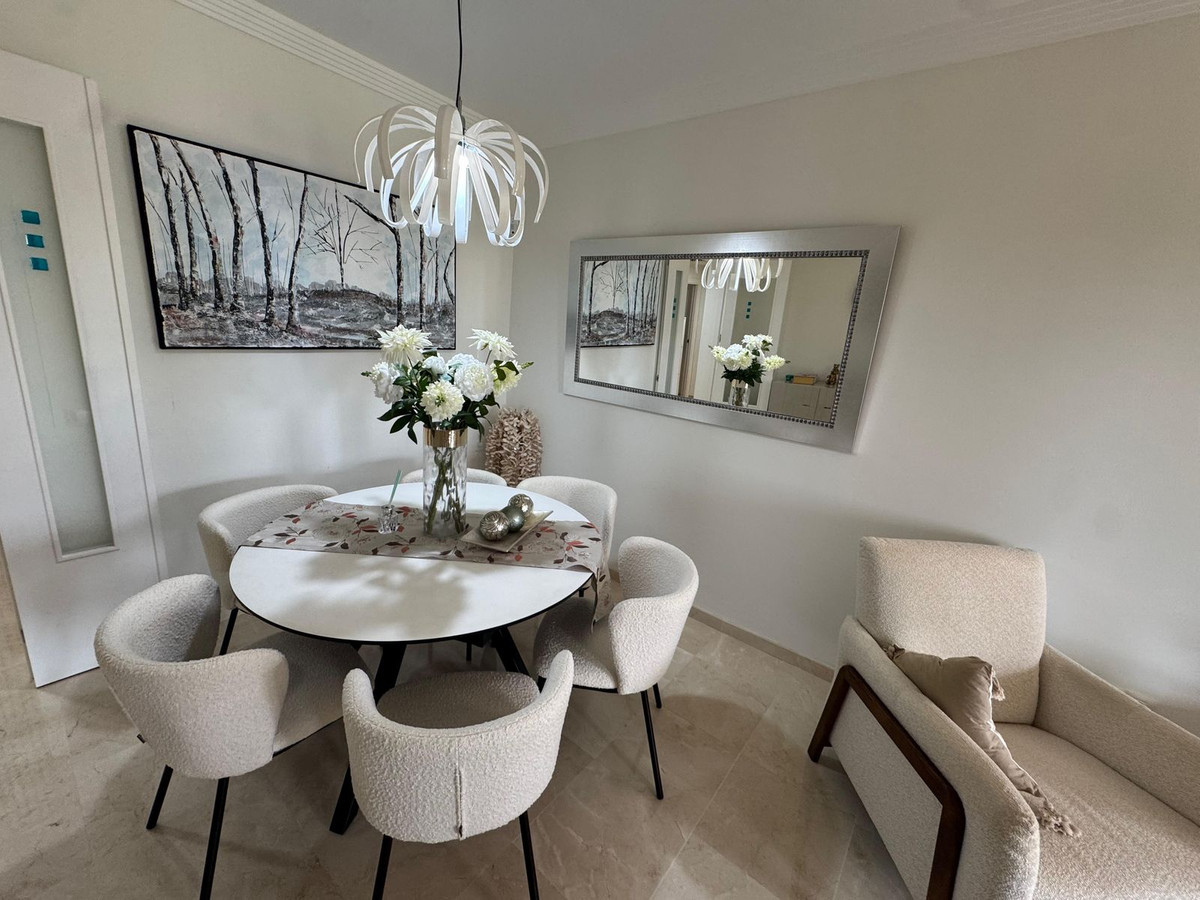 The interior has a very modern look and the spacious terrace offers beautiful views of the gardens and swimming pool. The location is very central, between San Pedro and Estepona, making it ideal for both permanent living and holiday accommodation.