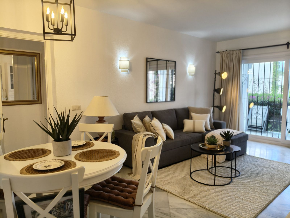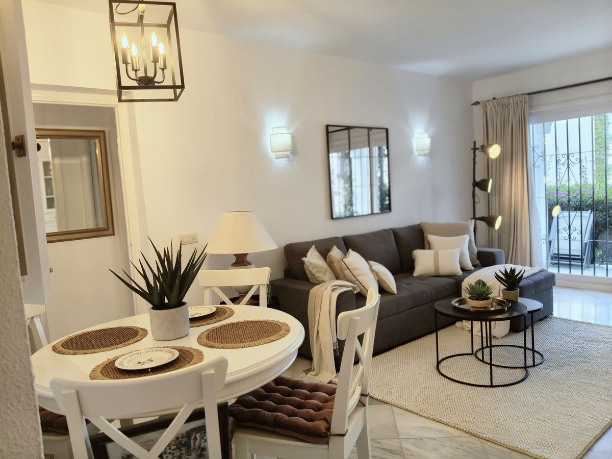 Excellent opportunity to acquire a one level garden apartment with a spacious storage room/Andalucian courtyard in El Paraiso Cortes Del Golf, Benahavis.