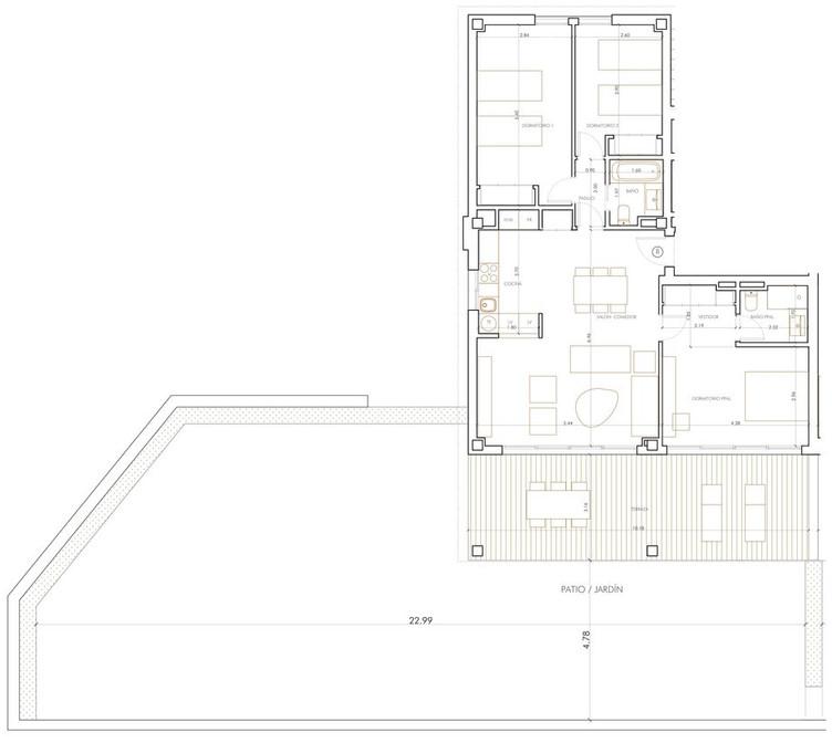 The apartment offers a spacious living-dining area with access to a covered terrace and garden, an open-plan kitchen fully equipped with Bosch appliances, three bedrooms with built-in wardrobes, and two bathrooms finished to high standards. The master bedroom also opens directly onto the garden, while the other two bedrooms enjoy views of green areas.