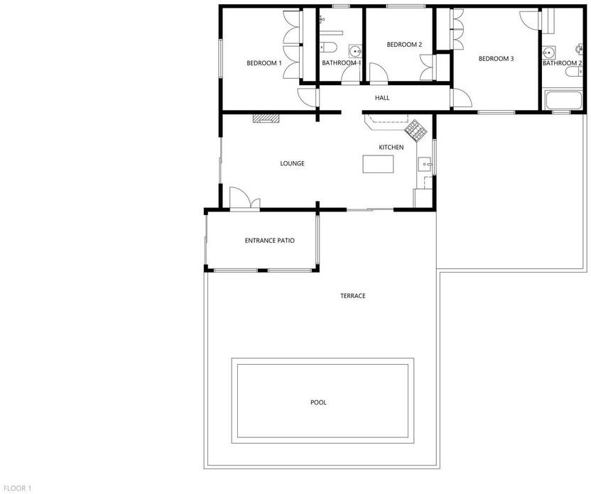 The villa features three bedrooms and two bathrooms. One of the bedrooms includes an ensuite bathroom. The house has a solid structure, but in some areas it could use a little love and attention to truly shine.