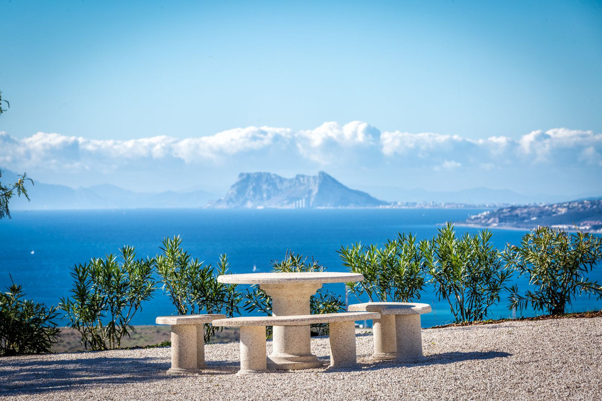 Magnificent contemporary-style villa, located just a 5-minute drive from the center of Estepona, in a privileged natural setting offering complete privacy and panoramic views of the sea, mountains, Gibraltar, and Africa. The property sits on a large plot of 15,500 m², of which 12,000 m² are completely flat, providing ample space for stables and a riding arena, tennis court, and other recreational or sports possibilities. The estate features around 30 olive trees, allowing for the production of your own olive oil, and a pine forest that enhances privacy and the natural charm of the surroundings. The property is situated at 200 m above sea level, offering 280º panoramic views.