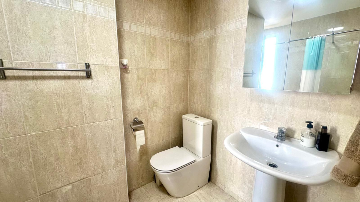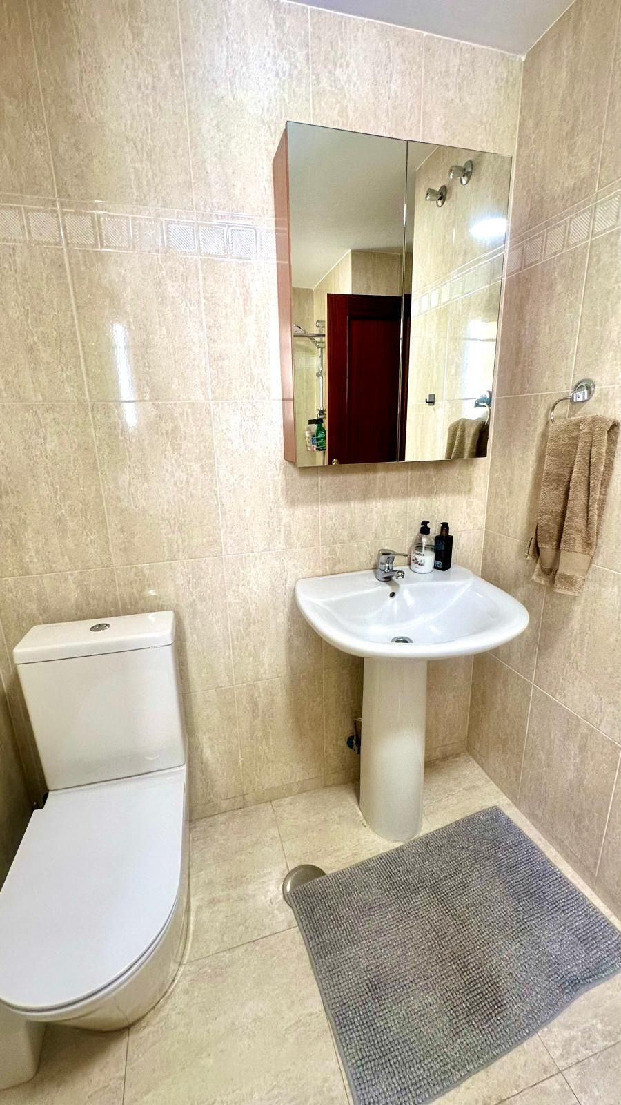 The fully equipped kitchen includes everything you need for daily life, along with practical storage space. The main bedroom is comfortable and well-ventilated, featuring a built-in wardrobe. The complete bathroom comes with a bathtub and a functional, well-kept design.