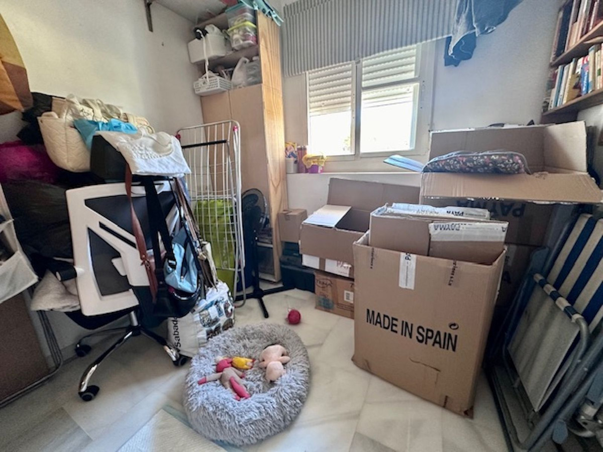 The third bedroom is slightly smaller, with a window, very bright, and is currently used as a storage area. Ideal for a child's or student bedroom.
