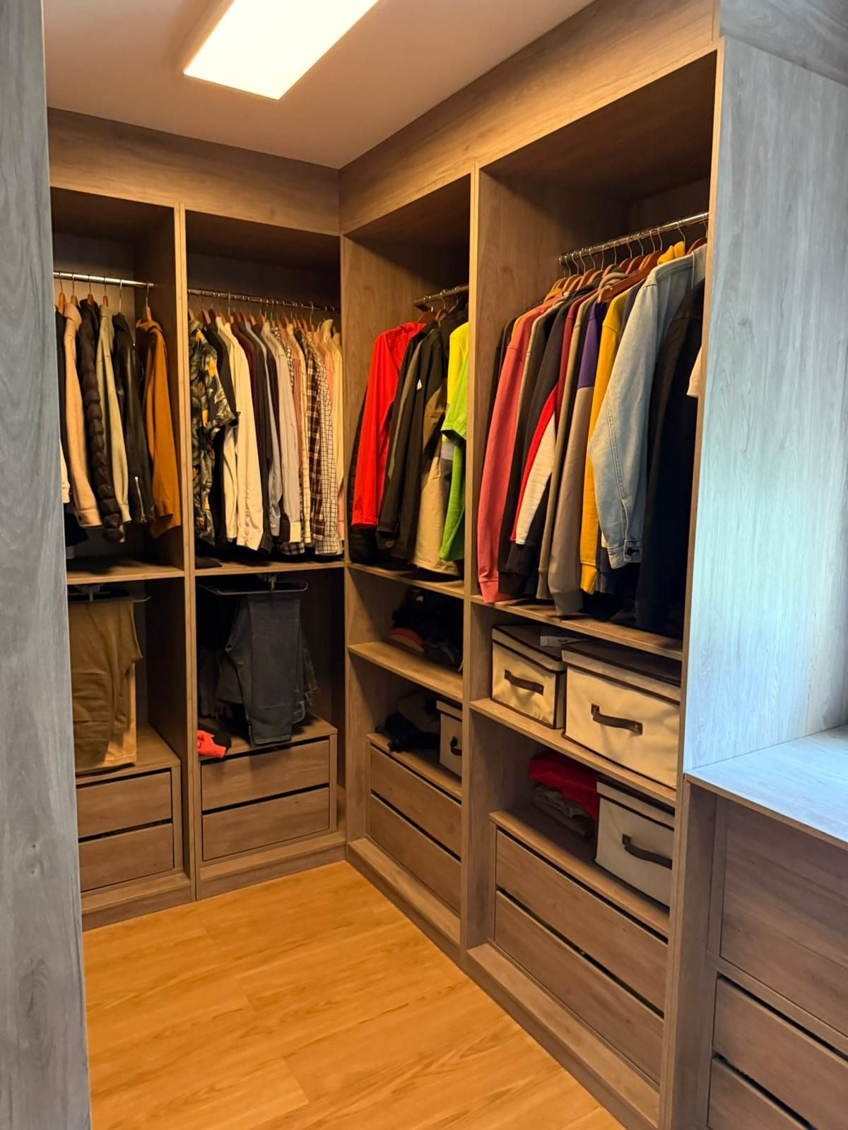 The sleeping area features three bedrooms, one of which is currently used as a dressing room, a full bathroom, and an additional guest toilet, providing comfort and functionality for the whole family.
