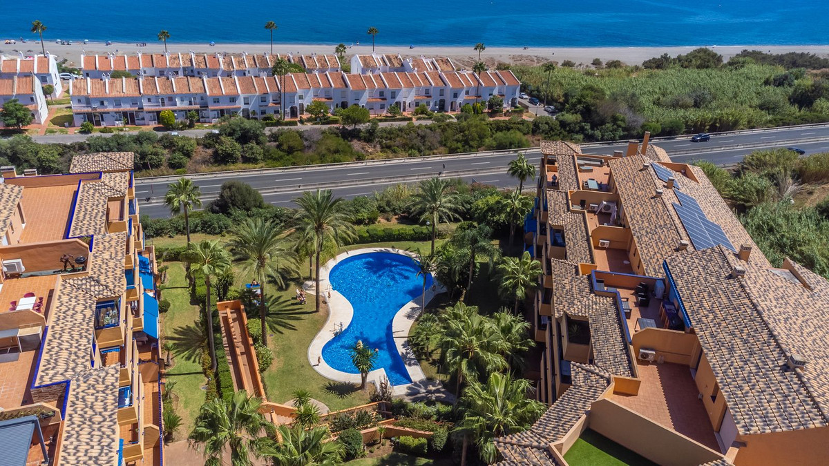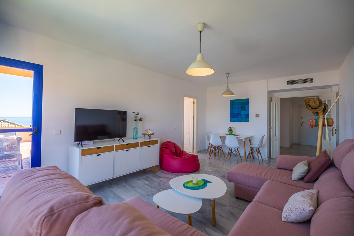Penthouse boasts an exceptional location in a peaceful and well-maintained residential complex on the Costa del Sol — perfect for those seeking a tranquil environment with close proximity to the sea. A pleasant walkway provides direct access to the beach, just a 3-minute walk away, allowing you to enjoy the coast without needing a car. This attractive penthouse is laid out on a single level and features 2 bedrooms, one of them with an en-suite bathroom, a separate kitchen, and a laundry area. The property stands out for its brightness, spaciousness, and especially for its private terrace offering impressive open views of both the sea and the mountains — an ideal setting to relax and enjoy the Mediterranean lifestyle. Thanks to its excellent orientation, the property enjoys natural light throughout the day, ensuring a warm and welcoming atmosphere all year round. Set within a well-kept community with a communal swimming pool, green areas, and an underground parking space included in the price. A property with excellent rental potential, both for holiday lets and long-term stays — also ideal as a permanent home or second residence. A highly recommended property, ready to move into and enjoy everything the Costa del Sol has to offer.