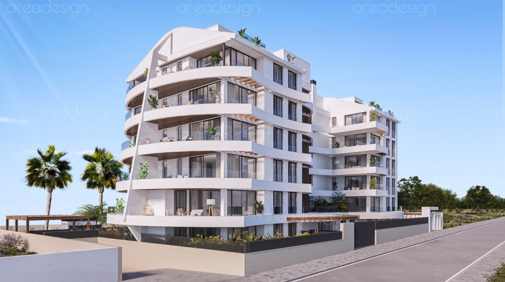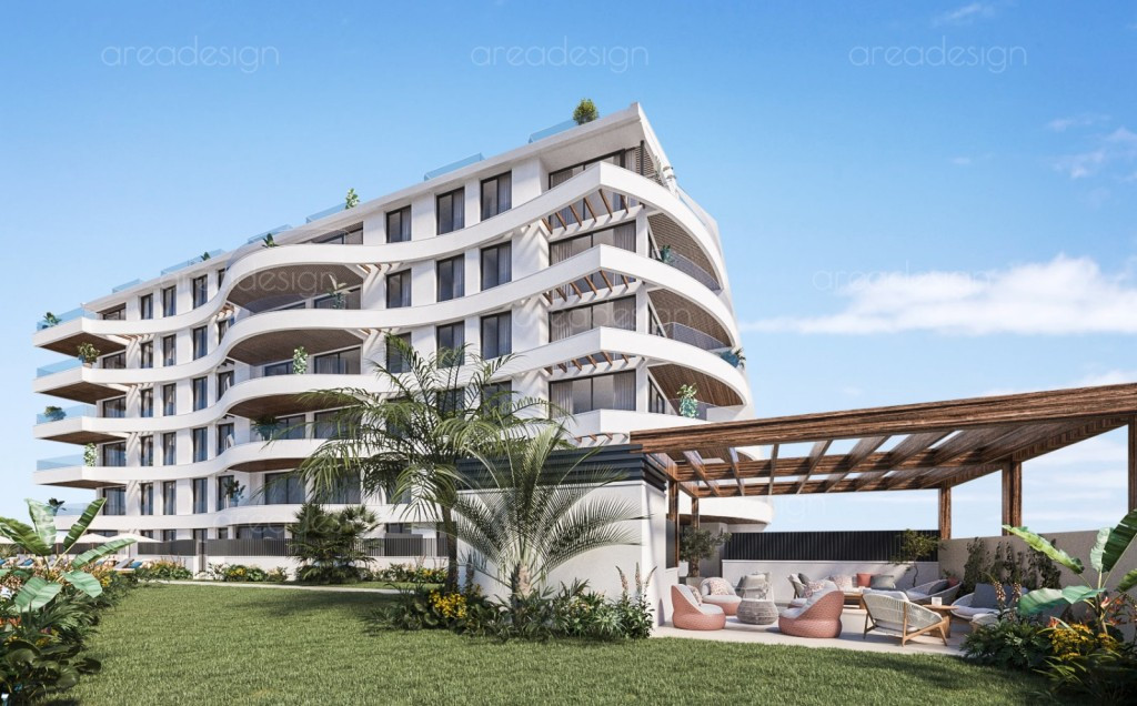 150 METRES TO BEACH AND MARINA!!! Only 33 units available!!! Marina de Oro offers a closed gated community. Communal gardens and pool. Walking distance to many shops, restaurants, marina, beaches and public transport. All apartments come with underfloor heating, airco split system. Aerotermia, double glazing. Floor to ceiling interior doors. Led lighting included. Fully fitted kitchens with Siemens appliances and Resin counter top. Domotic Home System. Saltwater swimming pool and tropical gardens.