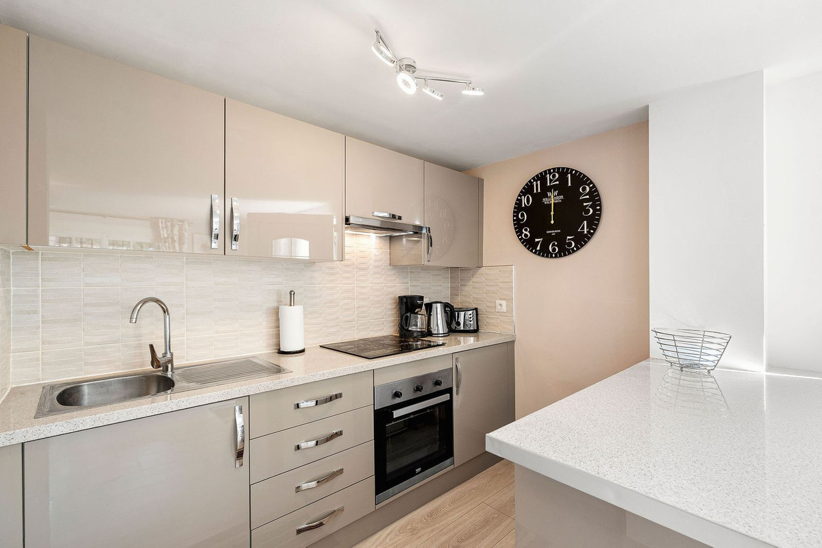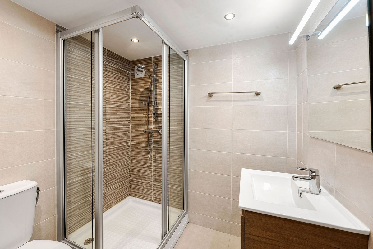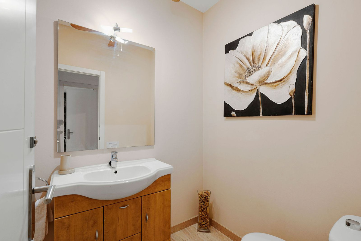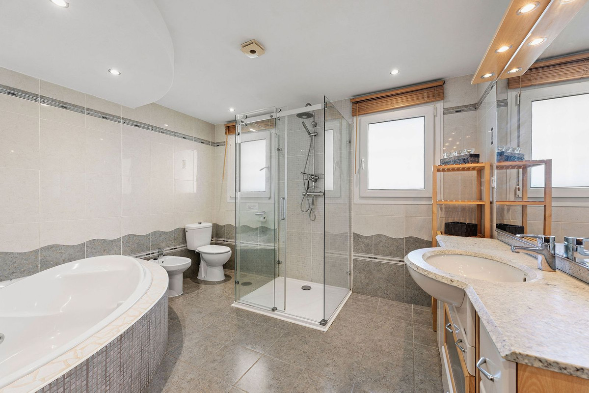On the downstairs level you have another living room and dining room leading out to the lower part of the terrace and pool area. Here you have a two spacious guest bedrooms, one of them ensuite and a further bedroom without window that would be noted as the 0.5 bedroom. The 2.5 bedrooms are also sharing a nice size bathroom. You also have another kitchen downstairs and a separate entrance so it could function as a separate unit.