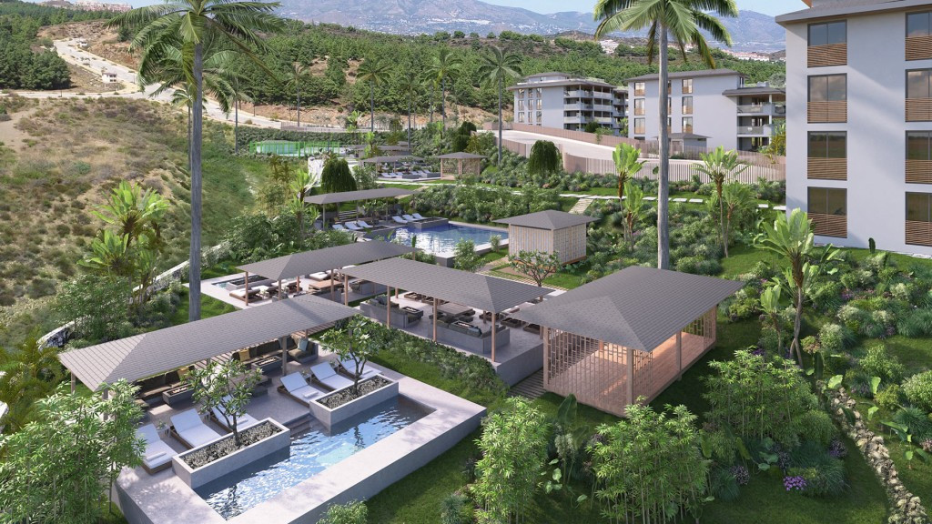 This small boutique style new development of 44 units is located at only 500 meters to the beach, shops, restaurants and public transport. Modern design apartments and penthouses with sea views set on a plot of 8.000 m2. Every apartment has 2 parking spaces. 7 Balinese style pools on the complex. Easy walking distance to all amenities and facilities in the area.