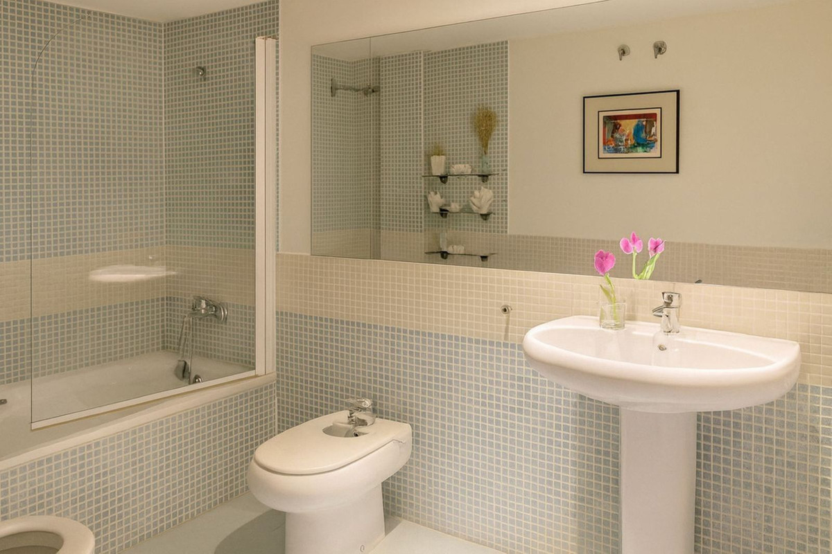 The flat has a practical layout: the kitchen is on the left, fully equipped with good quality appliances, ideal for everyday use.
