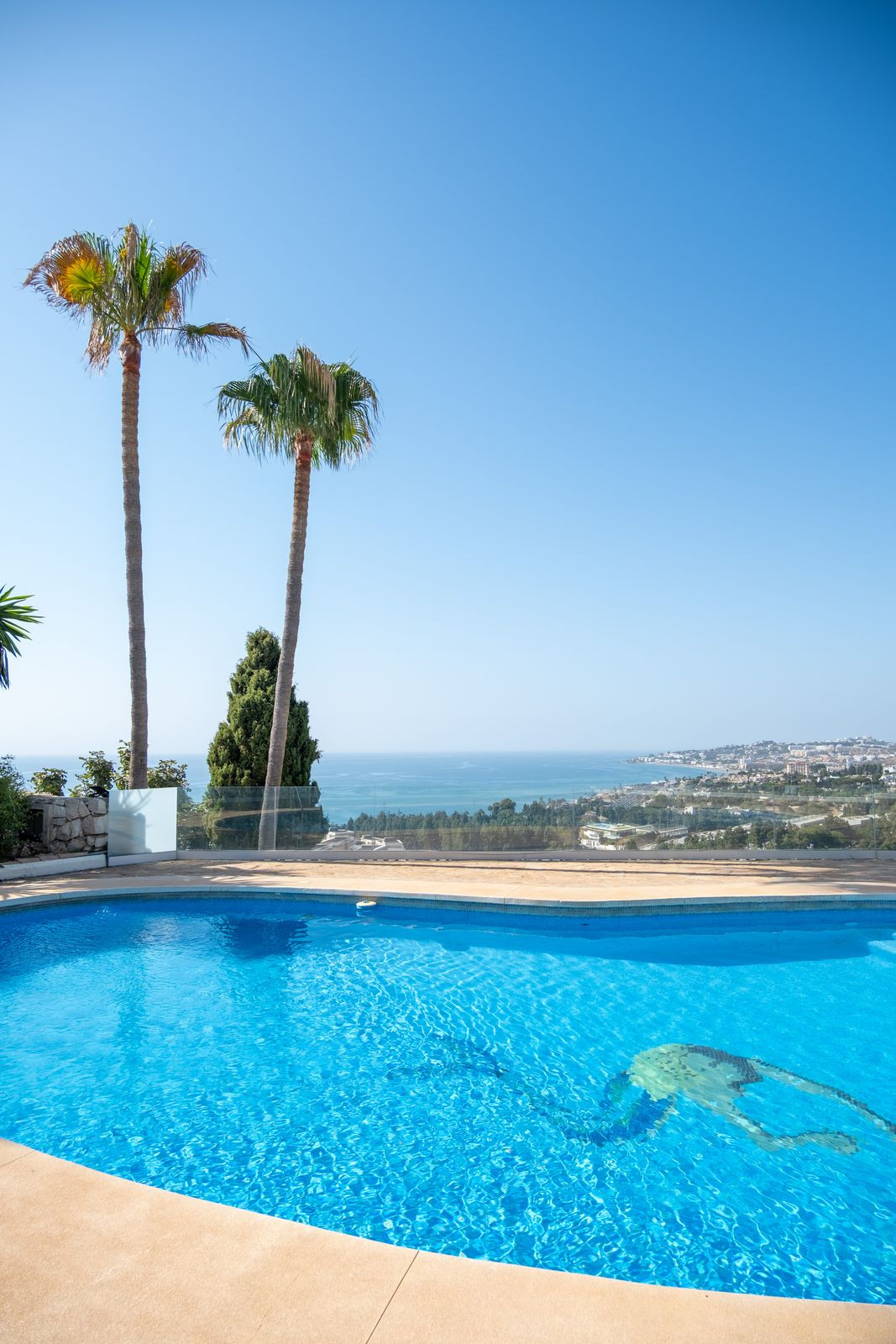This stunning villa is situated on a large and private plot offering breathtaking panoramic views of the Mediterranean.