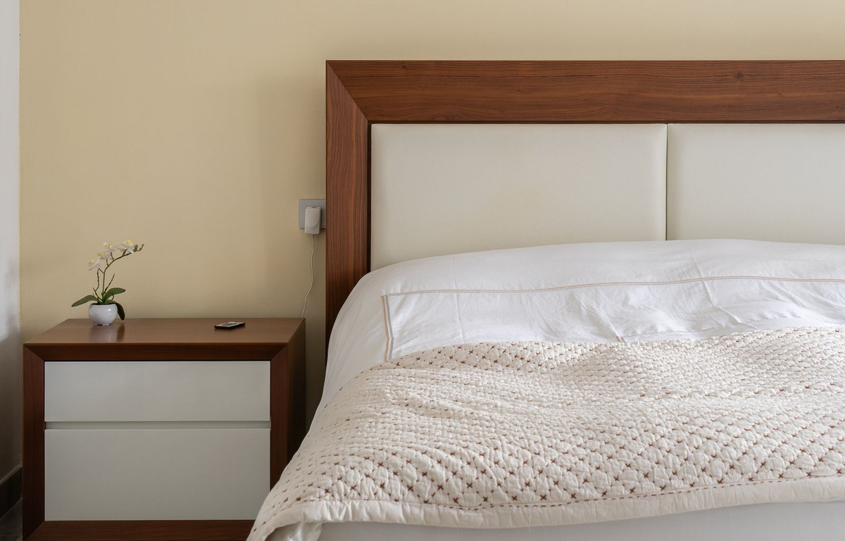 On the lower level, the elegant master suite features a generous walk-in wardrobe and a luxurious bathroom with both bathtub and shower. A section of the adjoining patio has been enclosed to create a practical home office — perfect for remote working. The bedroom opens directly onto a private terrace and garden, with access to the beautifully landscaped communal areas and swimming pool.