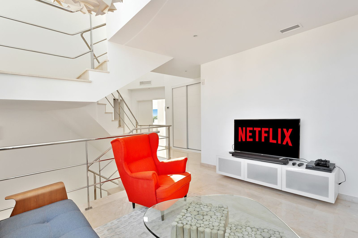 On the first floor of the property there is a bright seating/gaming area with floor to ceiling windows and 4 very spacious bedrooms, all with en-suite bathrooms and fitted wardrobes. The impressive master suite has spectacular views of the surroundings and the sea from its large private terrace. The second and third bedrooms also have superb sea views from a large, shared terrace.
