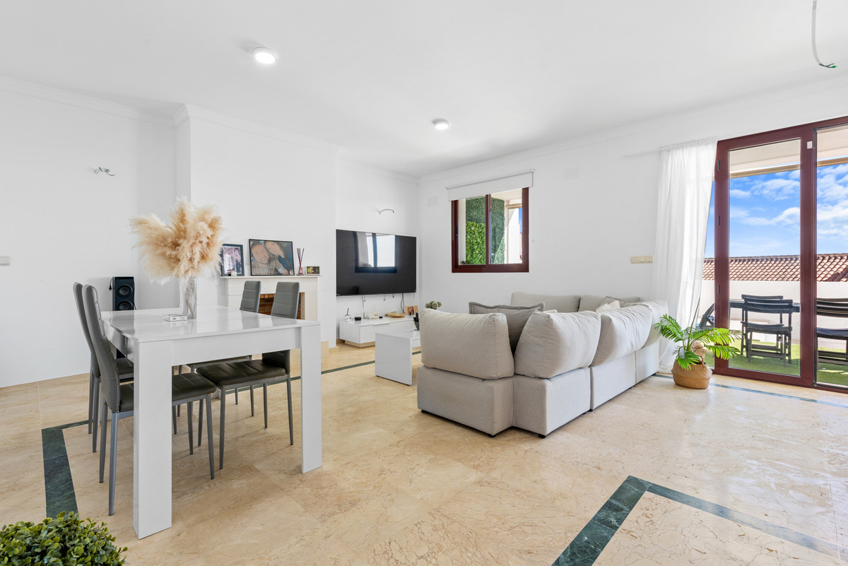 Two-bedroom townhouse located at the top of the Doña Julia Golf resort in Casares Costa, offering panoramic views of the countryside and the Mediterranean sea.