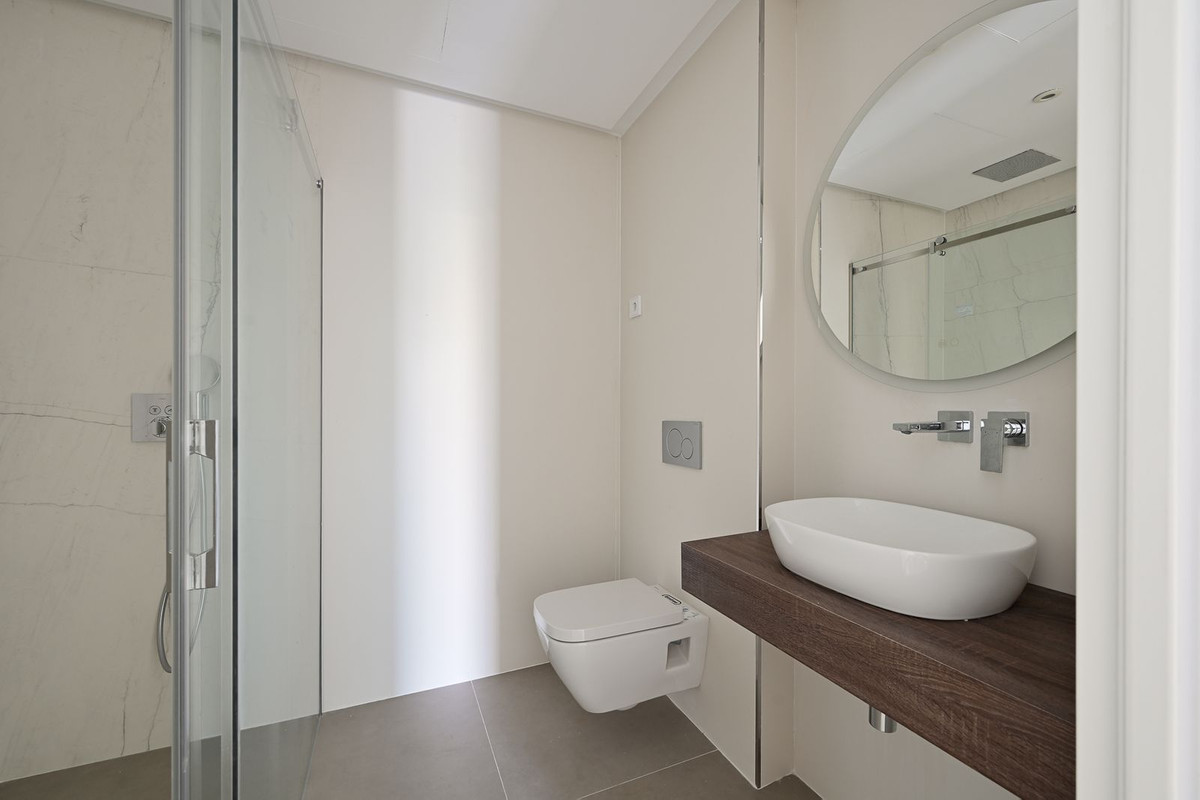 Built with high-quality materials and modern finishes, this home includes air conditioning, underfloor heating in the bathrooms, and elegant detailing throughout. The gated community provides 24-hour security, lush Mediterranean gardens, and two infinity pools with breathtaking sea views.