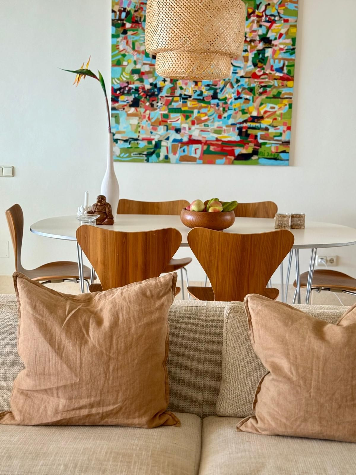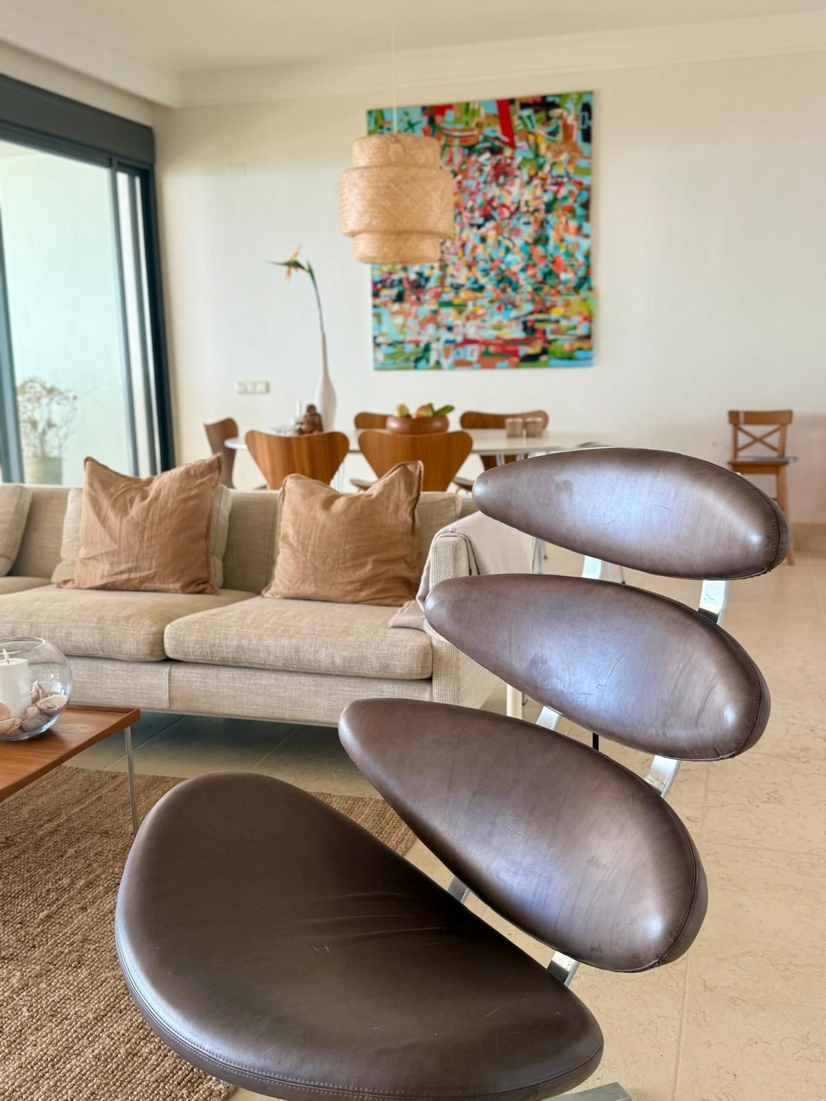 The interior design is tasteful and timeless, featuring classic Danish designer furniture that enhances the apartment’s exclusive and inviting atmosphere.