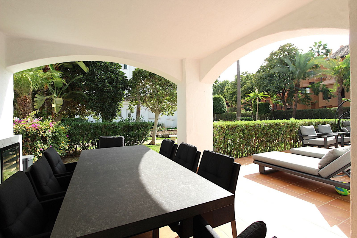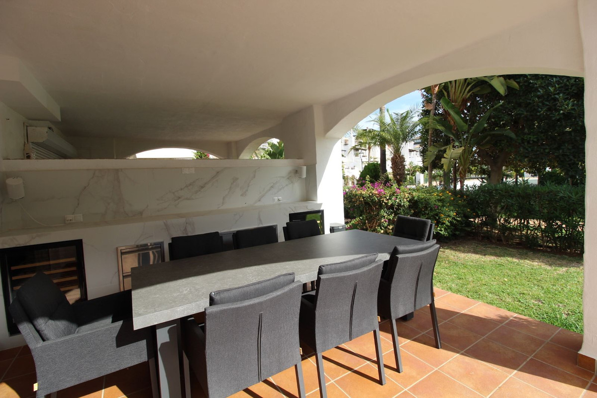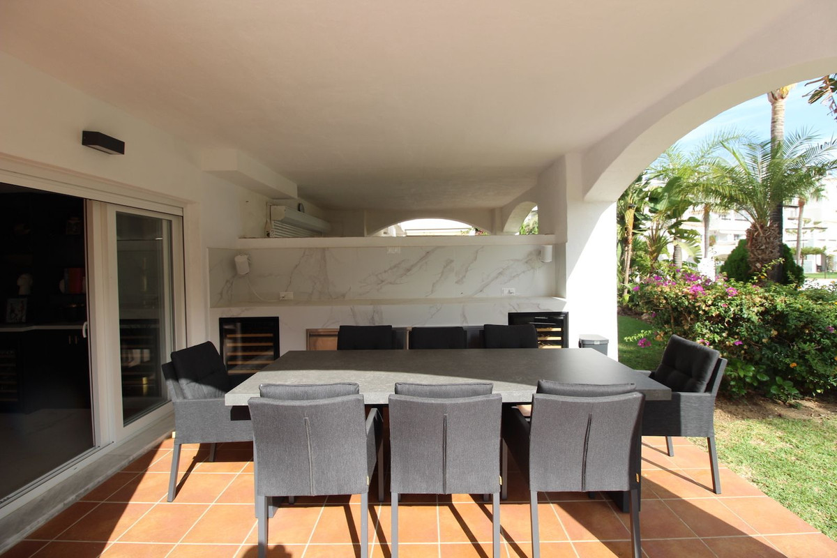 We are delighted to offer for sale this stunning newly listed corner garden apartment in the exclusive and first line development Las Adelfas on San Pedro Alcantara. The property has been totally renovated to the highest level using only the finest materials and boast 4 bedrooms, 3 luxury bathrooms, spacious lounge dining area with state of the art open plan kitchen with breakfast bar, marble tiled flooring throughout, air conditioning hot and cold, new double glazed windows with electric security shutters, spacious terraces that surround the apartment with built in marble bar area including fridges and wine coolers for the ultimate entertaining. The terraces are very private with beautiful hedging and lead to the communal gardens and pool areas which are meticulously maintained for your relaxation and enjoyment. The development is gated with 24 hour security, first line to the wonderful beaches and mediterranean sea where you will find many top quality restaurants and bars to relax with family and friends. The apartment also enjoys a secure underground parking space with storage room and direct lift access to the property. If you are searching for the ultimate apartment in the best location then we can highly recommend viewing this amazing home as you will not be disappointed.