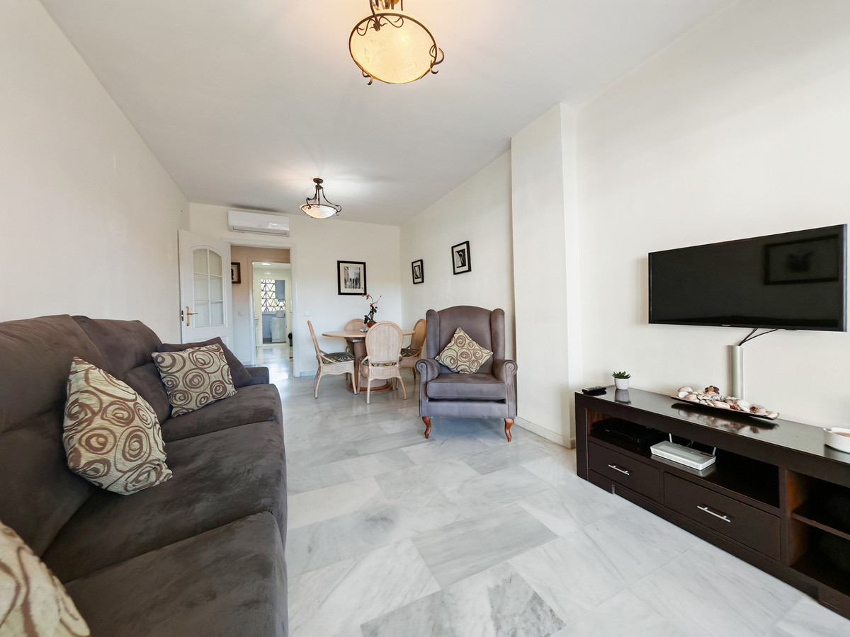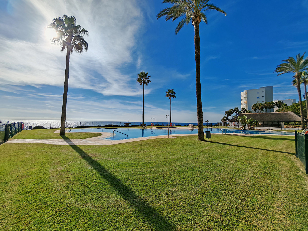Apartment for sale in , Mijas Costa with 2 bedrooms, 2 bathrooms, 1 on suite bathroom and with orientation west, with communal swimming pool, private garage (1 parking spaces) and communal garden. Regarding property dimensions, it has 80 m² built and 20 m² terrace. Has the following facilities front line beach, amenities near, transport near, air conditioning, fully furnished, fully fitted kitchen, utility room, marble floors, security entrance, double glazing, video entrance, security service 24h, private terrace, kitchen equipped, living room, sea view, security shutters, laundry room, internet - wi-fi, covered terrace, 24h service, fitted wardrobes, gated community, lift, garden view, pool view, beach side, doorman, close to sea / beach, close to golf, glass doors, balcony, excellent condition, close to shops, close to town, close to schools, surveillance cameras and pets allowed.