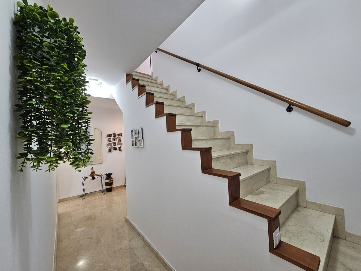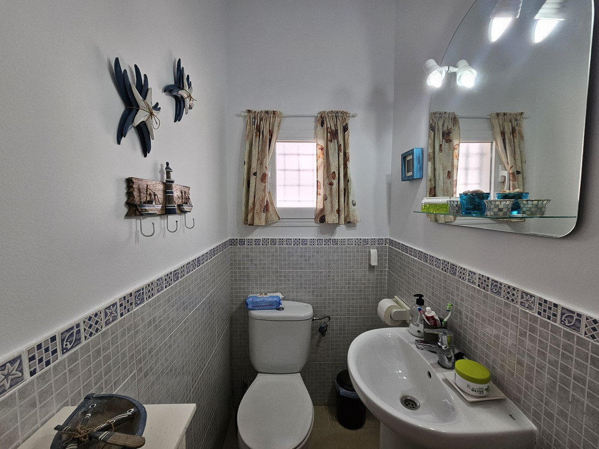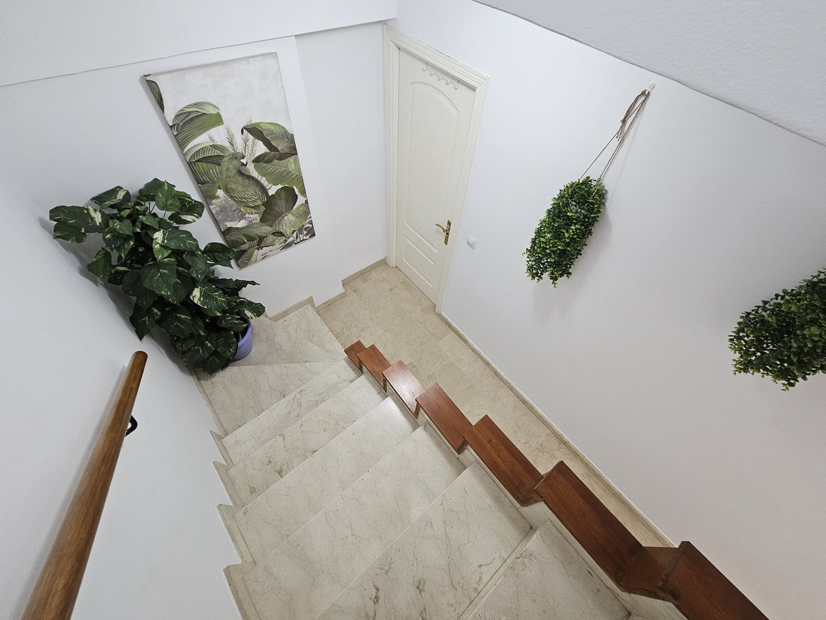 Downstairs 2 good size bedrooms with fitted wardrobes and en-suite bathrooms. Large laundry room and storage. Rooms are always nice and cool, but blinds and air con fitted in all rooms and terraces! First floor, guest toilet, separate kitchen, living/dining and a 20M2 south facing terrace. Up from here SPIRAL stairs to another 30M2 private terrace with amazing views, even of the sea!