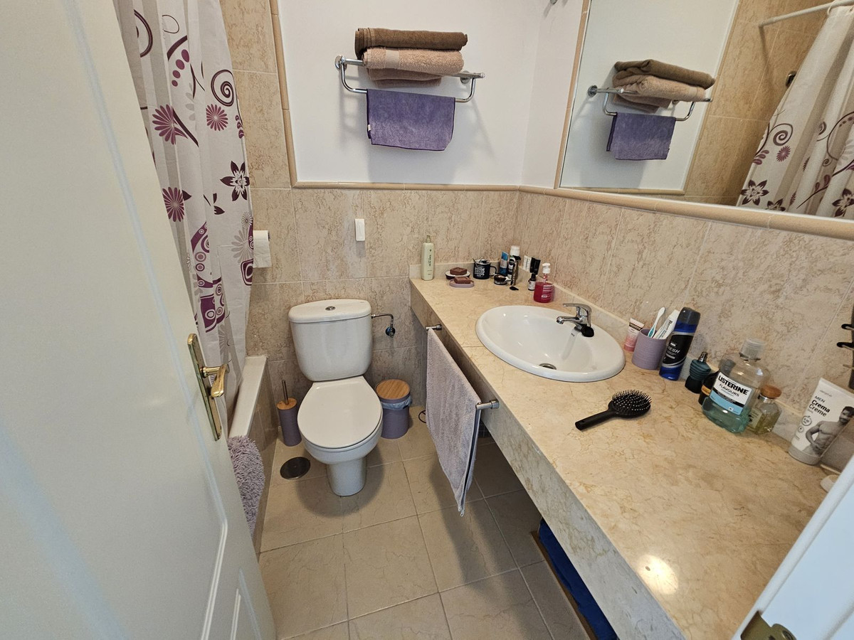 Entrance from the parking is on the lower level of the property. On the lower level you find two bedrooms and they both have an own en-suite bathroom. Two bedrooms are large and walk out onto a South-West facing terrace. There is a large communal pool; there is also a kid’s pool. The communal pool area has got showers.