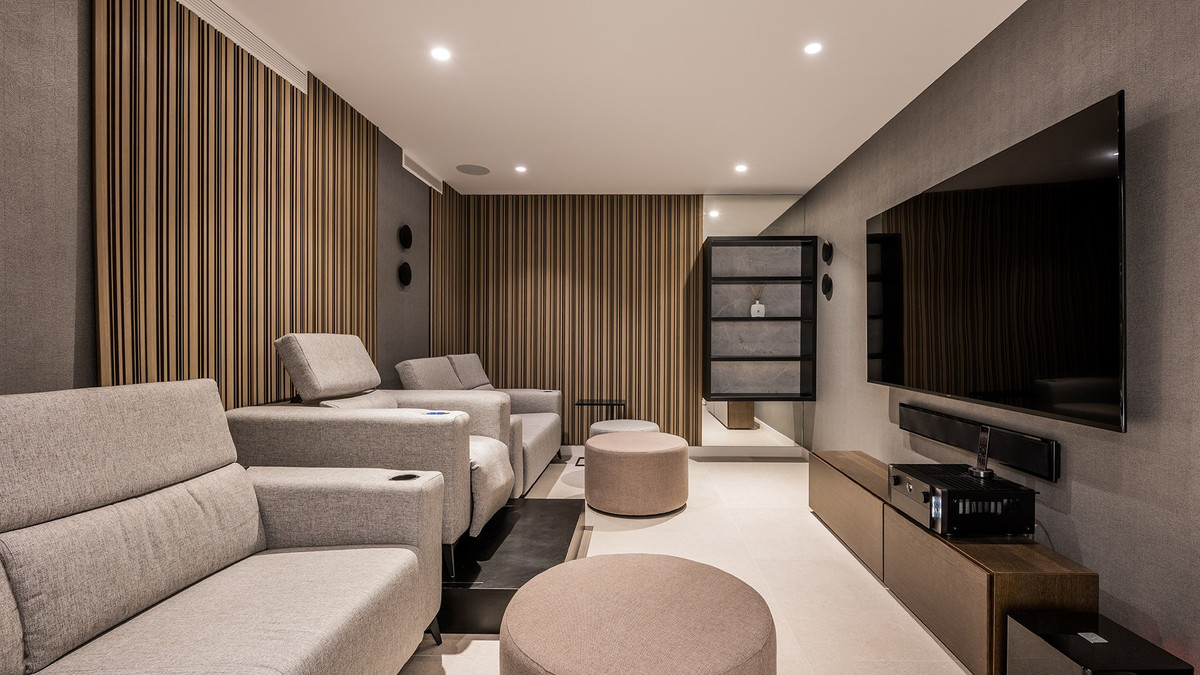 The villa is built mainly all on one level plus lower level, quite rare to find on the market. It has a fresh, modern feel throughout. Decorated in a soft, neutral palette, it feels relaxed, luminous and welcoming.