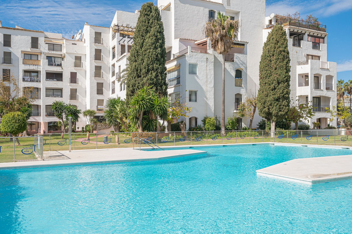 Welcome to Marbella.Imagine waking up every morning with the gentle Mediterranean breeze caressing your face and the promise of a new day in one of the most exclusive enclaves in the world.This luxurious duplex, located in the vibrant heart of Puerto Banús, is not just a property: it is a haven of elegance, serenity and style.From the moment you step inside, you will be dazzled by the exquisite décor, where every detail has been carefully chosen to create a unique visual and sensory experience.The spacious and bright rooms open naturally to the outside, allowing the southern light to flood every corner.On the main floor, the fully equipped separate kitchen is an ideal space for both enjoying fine dining and sharing special moments.Adjacent to it, the living room offers an atmosphere of absolute comfort, perfect for relaxing after a day enjoying the charms of Marbella.On this same level, two bedrooms guarantee rest and privacy:• A master suite with a king-size bed, private bathroom and a cosy glazed balcony where silence and calm reign supreme.• A second bedroom with two single beds and a full bathroom, designed for the comfort of family or guests.Climbing the elegant staircase, you discover the true treasure of the property:a spacious master suite with direct access to the upper terrace.From there, the sea views are a changing spectacle that accompanies every sunrise and every sunset.