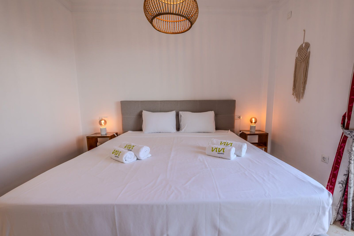 The master bedroom is both spacious and elegant, featuring direct access to the terrace, a large walk-in dressing room, and a luxurious en-suite bathroom with a walk-in shower and a bathtub with an additional shower overhead. The 2 other bedrooms are well-sized, with fitted wardrobes, and is served by an adjacent bathroom equipped with a large walk-in shower.