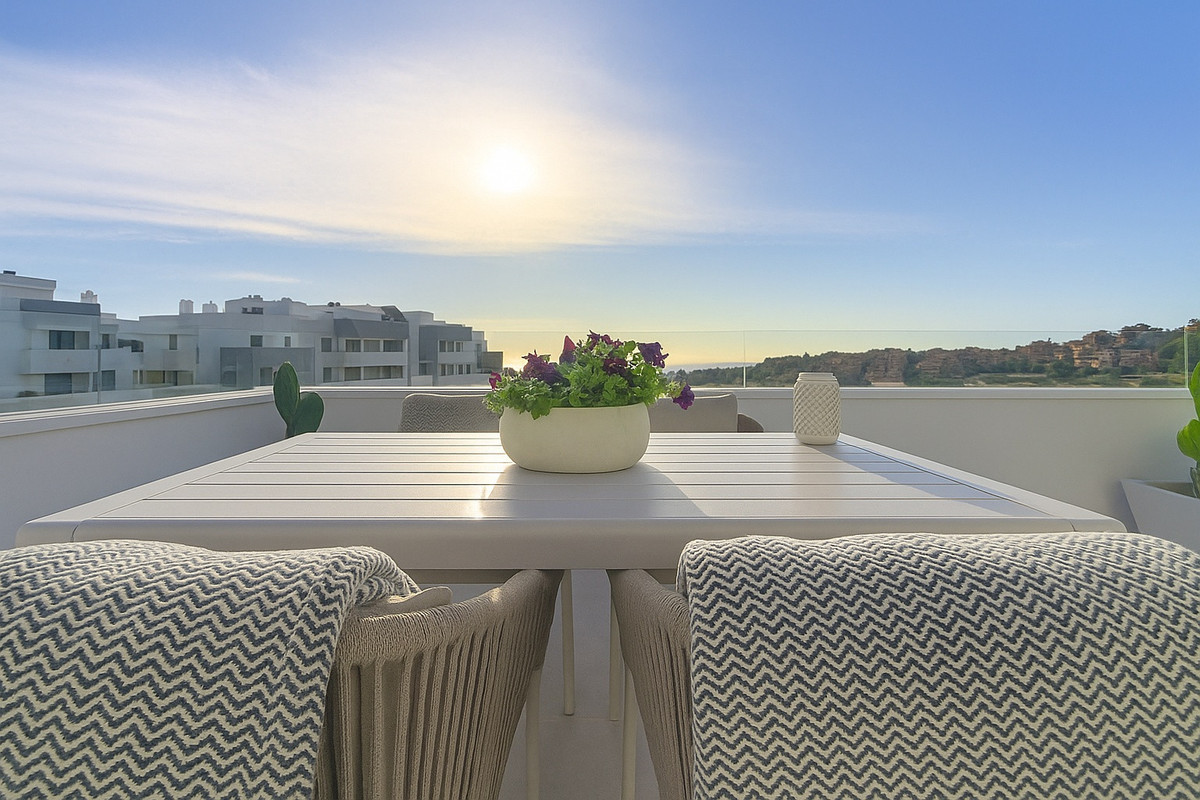 This duplex penthouse is located in the Serenity Views Urbanization, in West Estepona, and stands out for its impressive sea views and spaciousness. The property, situated in a gated community, offers the tranquility of living close to the sea and the convenience of being near golf courses, shops, restaurants, and schools.