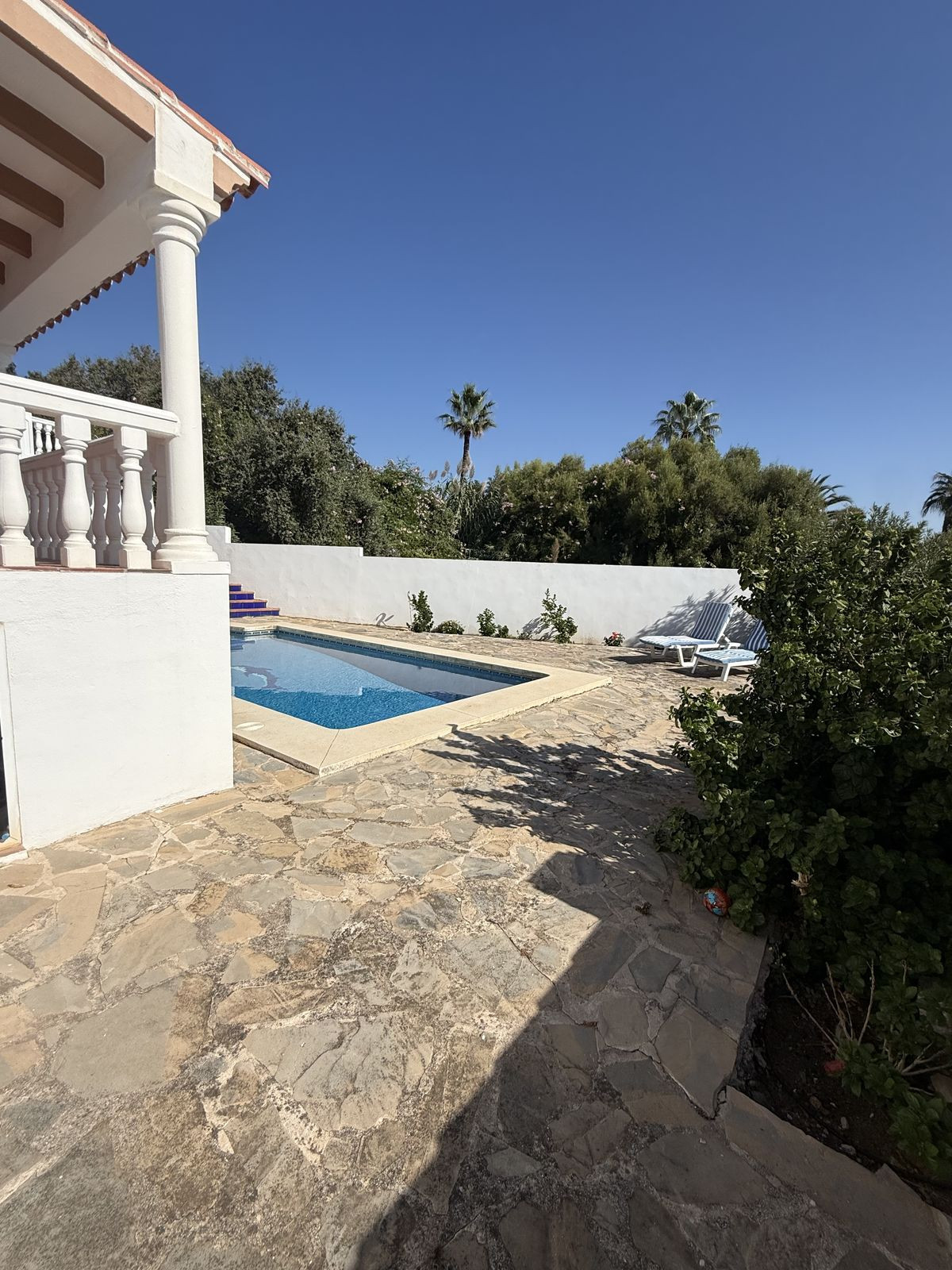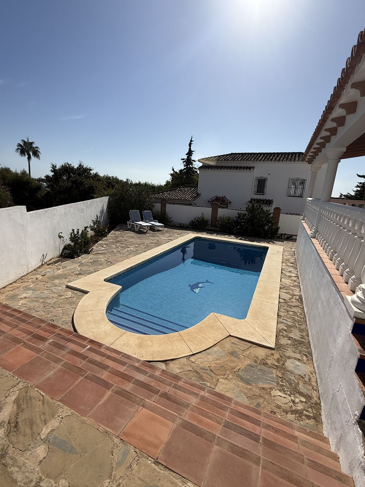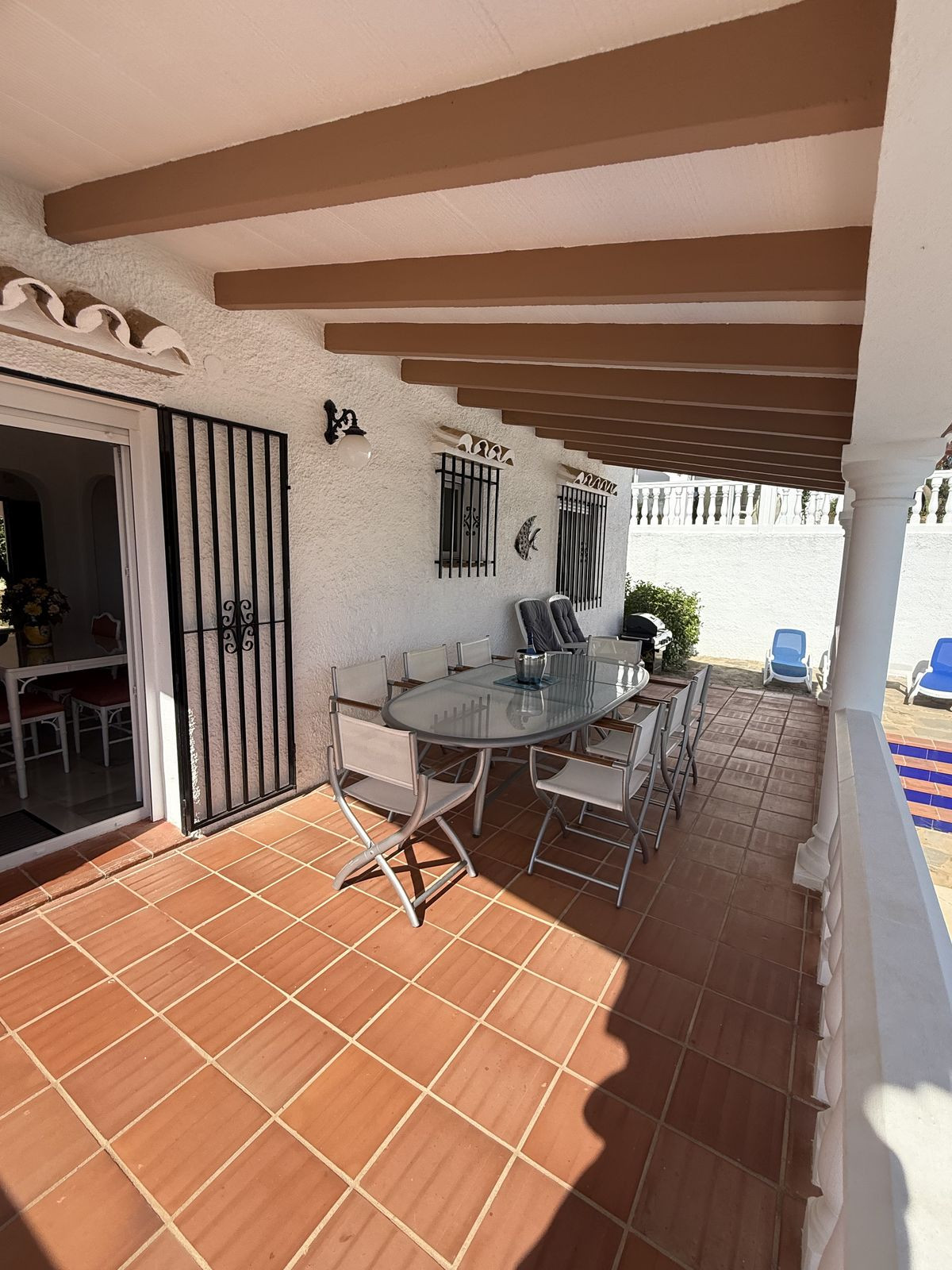 To the outside you will find lovely maintained gardens with mature lemon trees, around the rear of the property is the very private pool and solarium area where you can relax and unwind in total privacy.