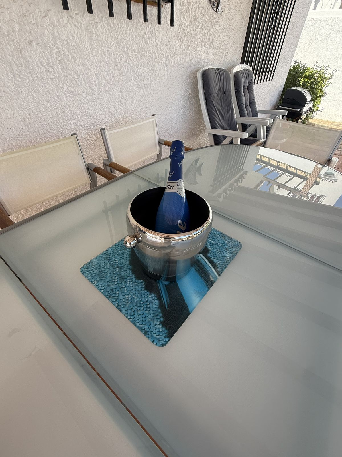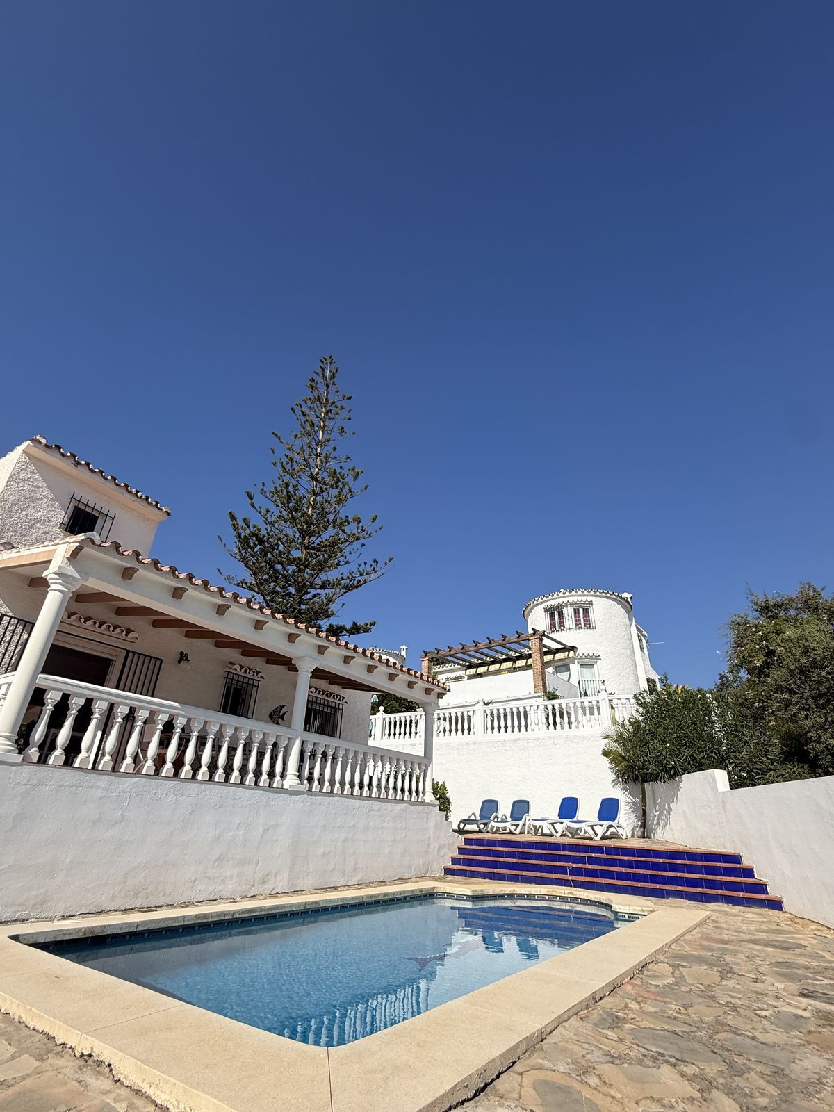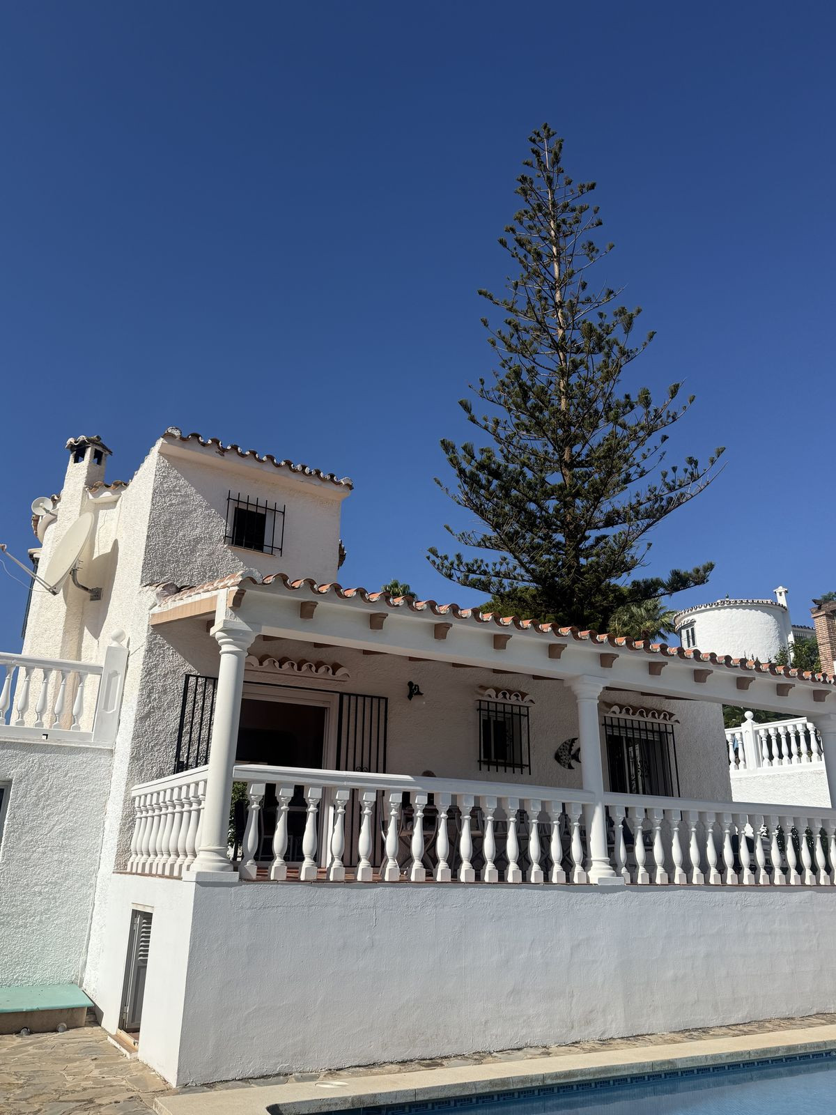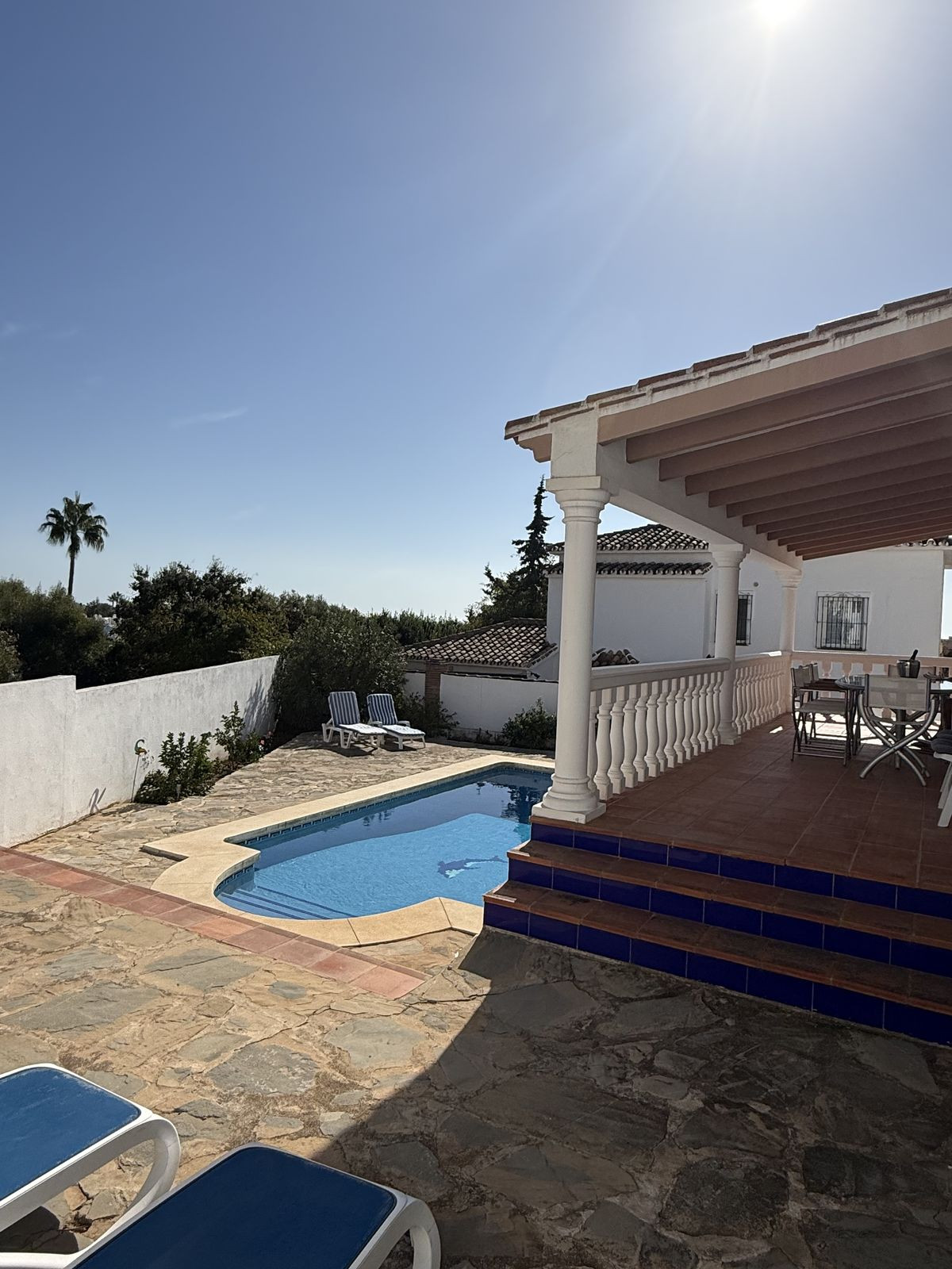 To the outside you will find lovely maintained gardens with mature lemon trees, around the rear of the property is the very private pool and solarium area where you can relax and unwind in total privacy.