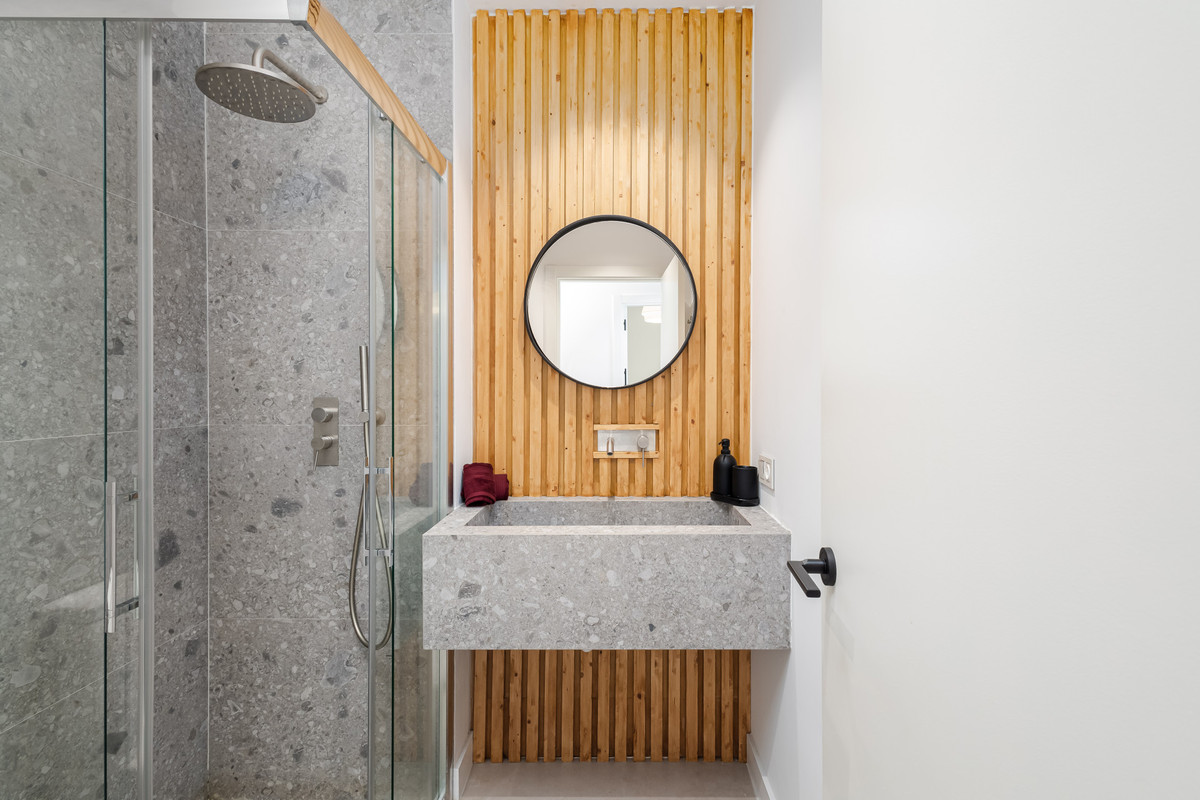 The open plan living area creates a light and airy atmosphere, perfect for both relaxing and socializing. Here you'll find an impressive kitchen island, which is ideal for socializing and cooking. The terrace is a real highlight, equipped with a built-in barbecue and an outdoor kitchen - perfect for enjoying delicious meals outdoors.