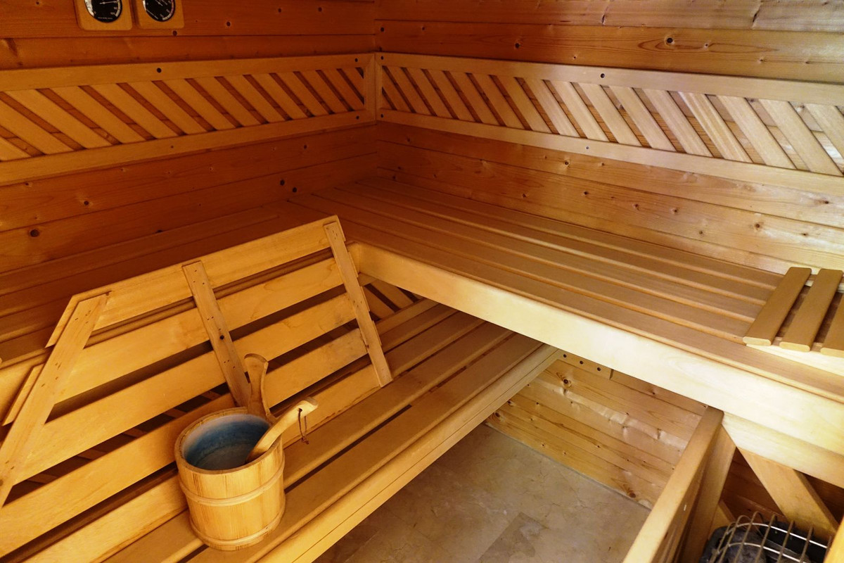 On the lower level, there is an independent apartment with its own bedroom, bathroom, and a dedicated sauna room—perfect for guests or extended family.