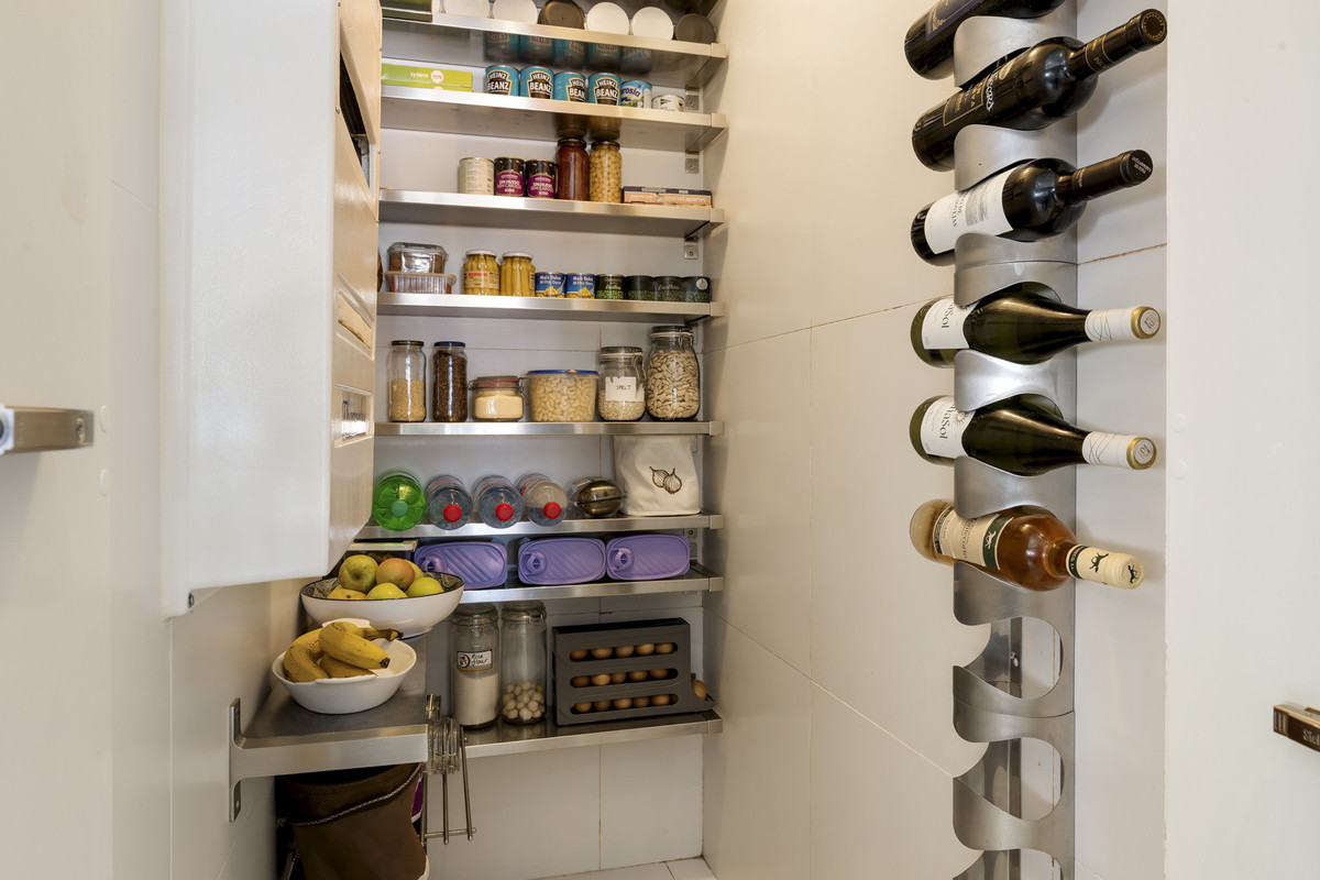 The modern kitchen is fully equipped and includes a dedicated fridge room with ample space for storing food, drinks, and supplies — a practical and luxurious feature that enhances everyday living and entertaining convenience.
