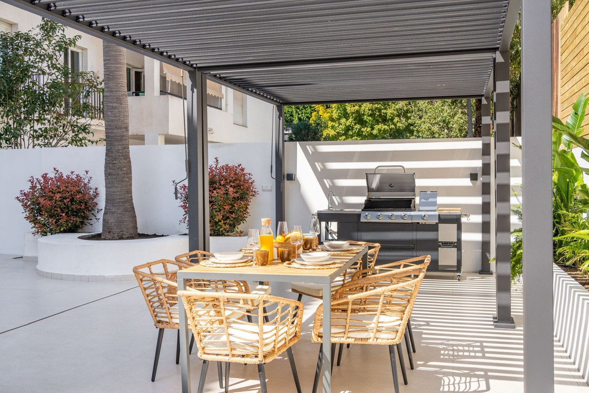 Experience luxurious living in this stunning newly refurbished ground floor apartment, located in the prime area of Marbella Nueva Andalucía, just a short walk to Puerto Banús. This sleek and modern property features three spacious bedrooms, each with its own en-suite bathroom, offering ultimate comfort and privacy. Additionally, there is a stylish guest toilet for visitors. The contemporary design combines elegance with functionality, creating a sophisticated atmosphere perfect for enjoying the Marbella lifestyle. The private garden provides breathtaking mountain views and is perfect for entertaining or relaxing in style, complete with a private hot tub and outdoor kitchen. Whether you're unwinding on the spacious terrace or exploring the vibrant nearby marina, this penthouse offers an unparalleled combination of location, luxury, and modern comfort.