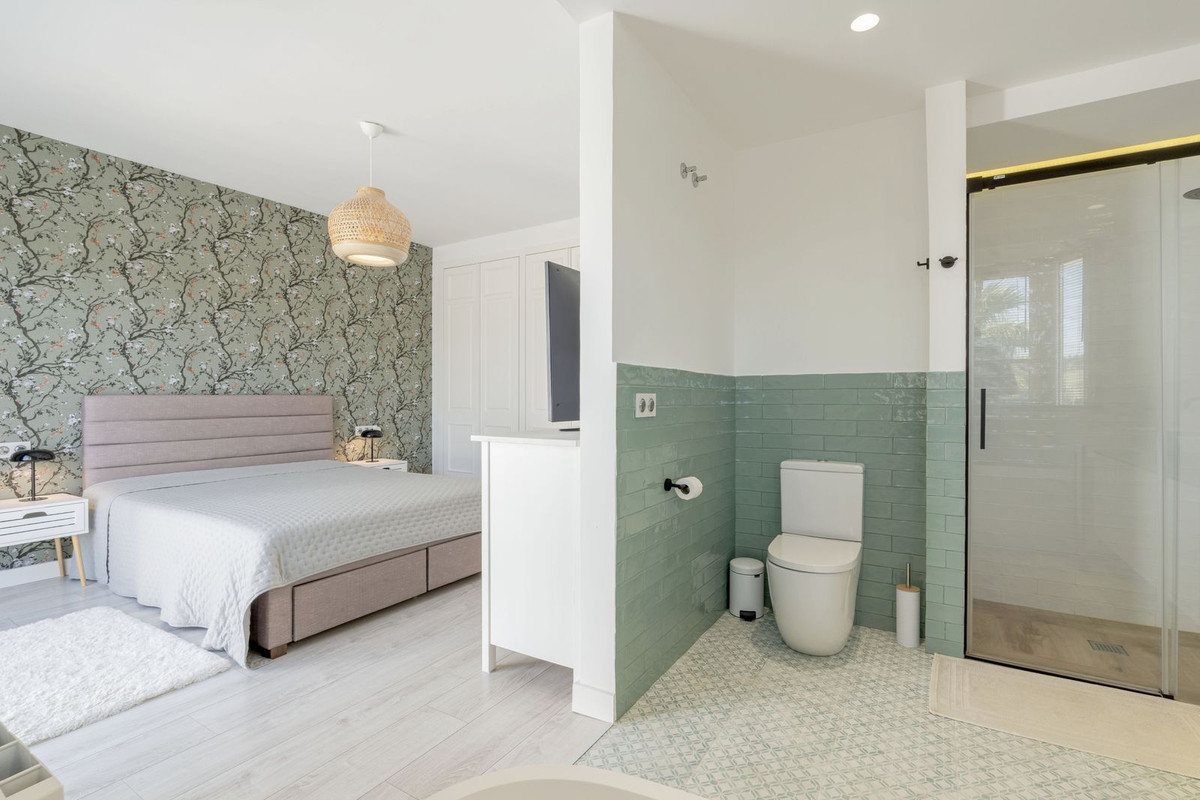 Inside, the villa offers 4 spacious bedrooms and 3 bathrooms (one en suite), along with a bright and inviting living area that opens onto west-facing terraces, where you can enjoy Marbella’s breathtaking sunsets.