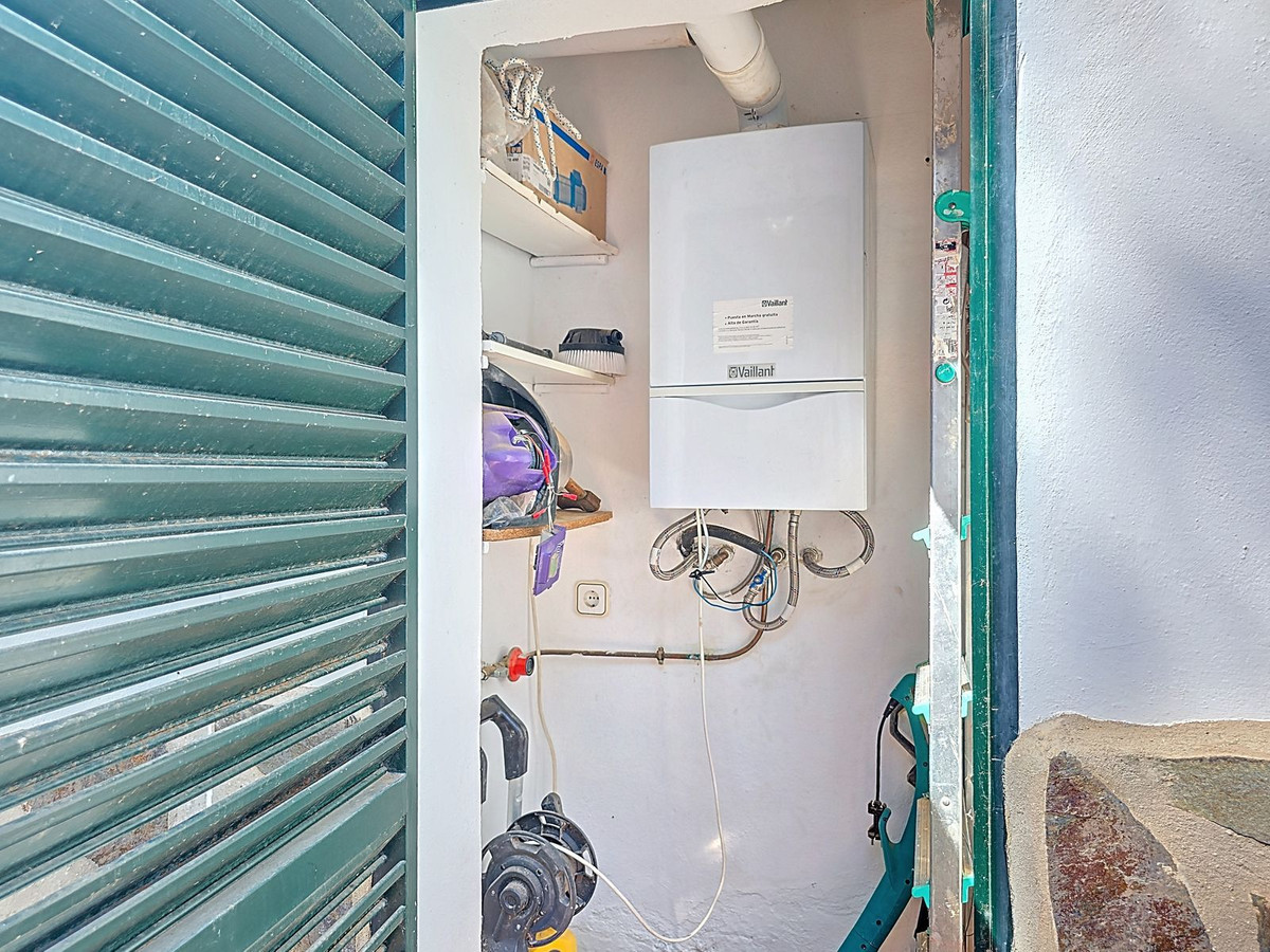 The villa features two spacious bedrooms, including a master . The bright and airy open-plan living-dining room is the heart of the home, complete with a cozy fireplace and double-glazed windows that provide warmth, natural light, and energy efficiency throughout the year. This inviting space opens directly to the terrace, blending indoor comfort with outdoor enjoyment.