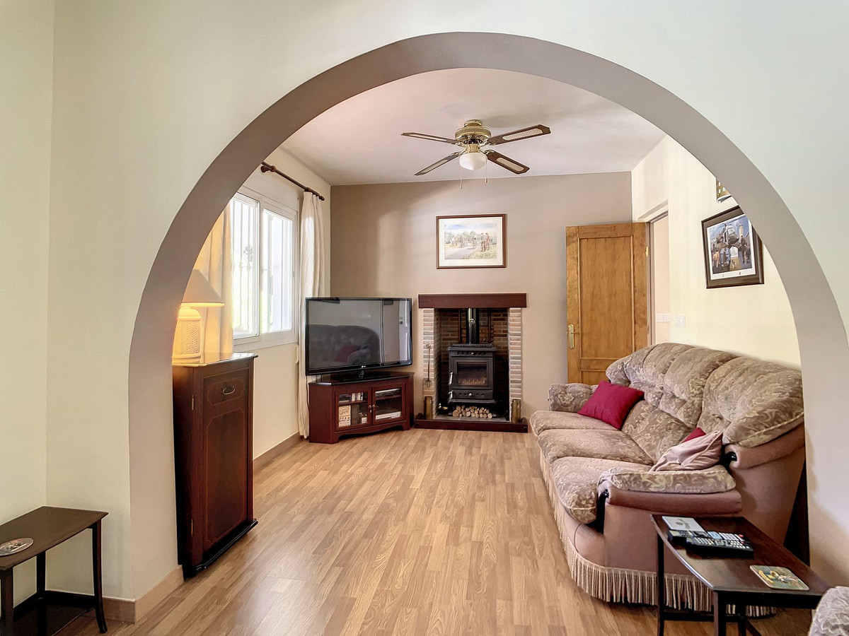 Outdoors, you’ll find a 10 x 4 metre saltwater pool with a tiled terrace, a full-length veranda, a garage, a separate fitness room or storage area, a shed for agricultural machinery, and multiple additional storage spaces. The surrounding land is beautifully maintained and planted with almond, olive, and carob trees, along with a generous orchard featuring figs, oranges, lemons, mandarins, cherries, plums, and avocados.