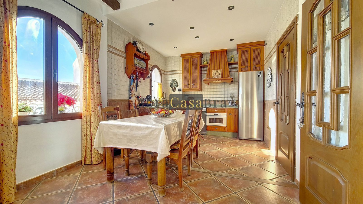 This amazing townhouse is located in an ideal and quiet location in the heart of the lively white mountain village of Cómpeta in the Axarquia region (Málaga province). The layout of this spacious and bright house is uncluttered and offers many possibilities. It is ideal for use as a family home and/or commercial business. At the back of the townhouse is a very large garage for several cars and a storage room.