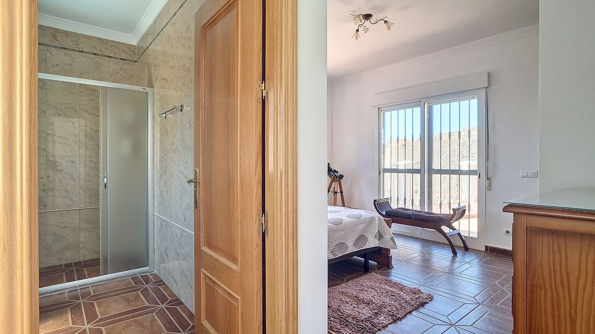 Located in one of the best locations in the Axarquia region, this villa offers you a main house with 2 floors, in total this villa has 4 bedrooms and 3 ensuite bathrooms. On the ground floor you have a spacious living room with air conditioning and fireplace, a fully equipped kitchen (oven, microwave oven, dishwasher and induction hob), a storage room as extra kitchen space and a storage room as laundry room. Connected to the living space is a spacious bedroom with built-in wardrobes and an ensuite bathroom (washbasin, toilet, bidet and shower). Furthermore, there is an extra bedroom or office and a separate guest toilet.