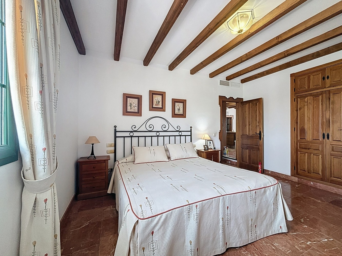 This charming villa in Los Romanes, Málaga, perfectly combines traditional Spanish architecture with modern comfort. The main house features 4 bedrooms, including a spacious master suite, 3 full bathrooms, a guest toilet, a laundry room, and a wine cellar in the basementideal for wine lovers. The living areas are characterized by wooden beam ceilings that add warmth and character. The main living room stands out with its striking sun-patterned wooden ceiling and a large wrought-iron chandelier. A fireplace and comfortable furnishings create a cozy atmosphere. Large windows and French doors flood the space with natural light and offer beautiful views of Lake Viñuela and the surrounding nature. The property also includes a separate guest apartment with 2 bedrooms, a bathroom, and a cozy open-plan living-dining area with a kitchenideal for visitors or additional accommodation. Outside, the villa boasts a large plot with a private pool, an outdoor kitchen with barbecue, a covered terrace, a pavilion, two garages, and two storage rooms with the potential to be converted into another apartment. Additionally, the property has its own well and a water cistern in one of the garages, ensuring a reliable water supply year-round. We are pleased to be able to present this dream property to you soon, either personally or via virtual viewing. Because this world is unique - just like our Axarquía. In Andalusia. On the Costa del Sol. Here, on the sunny side of life...