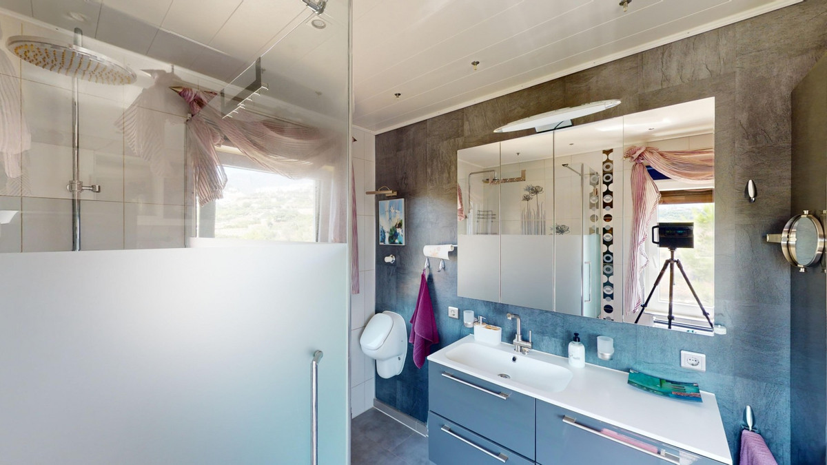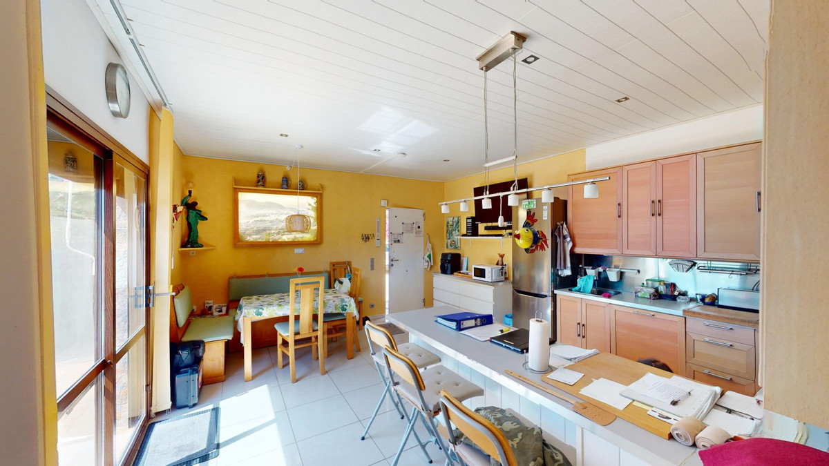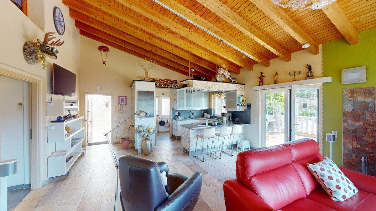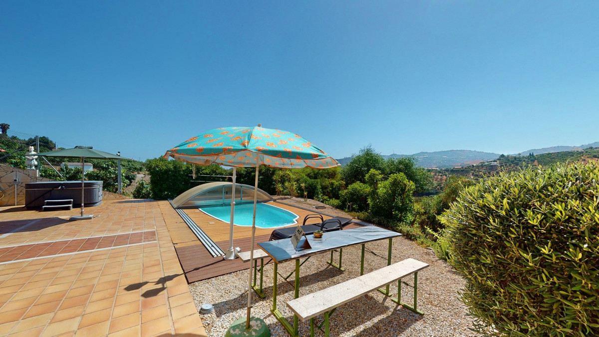 Stunning Villa Below Frigiliana for Sale. This impressive villa, nestled below Frigiliana, offers two separate living units across two floors, each with its own driveway and privacy. The upper unit spans 150 m2 and features a spacious open-plan living and dining area with an adjoining kitchen and convenient storage space. From the terrace, enjoy breathtaking views of the surrounding mountains. A standout feature of this apartment is the rotating fireplace in the living room, adding warmth and ambiance. Additionally, the terrace accommodates a fitness room. Another highlight is the luxurious bathtub in the living room, perfect for relaxing moments. The unit comprises three spacious bedrooms, two bathrooms (one en-suite in the master bedroom), and a guest toilet. The lower unit includes a cozy living and dining area with a kitchen, one bedroom, and a bathroom, totaling 80 m2 of living space. The entire house is equipped with underfloor heating, air conditioning, and a central vacuum system, built to the highest German standards with excellent insulation and quality materials. A solar panel system on the roof provides heating and hot water. The outdoor area of this exceptional villa leaves nothing to be desired. There is a heated saltwater pool with an easy-to-operate cover, a relaxing jacuzzi, and a fully equipped outdoor kitchen with a sauna. Additionally, there is a workshop, a caravan, and another small building at the foot of the property. The 6000 m2 plot is adorned with numerous fruit trees, inviting nature lovers to linger. The villa boasts good connectivity and is perfect for those who appreciate a tranquil lifestyle amidst nature. Experience luxurious living in a breathtaking location your new home below Frigiliana awaits! We are pleased to be able to present this dream property to you soon, either personally or via virtual viewing. Because this world is unique - just like our Axarquía. In Andalusia. On the Costa del Sol. Here, on the sunny side of life...