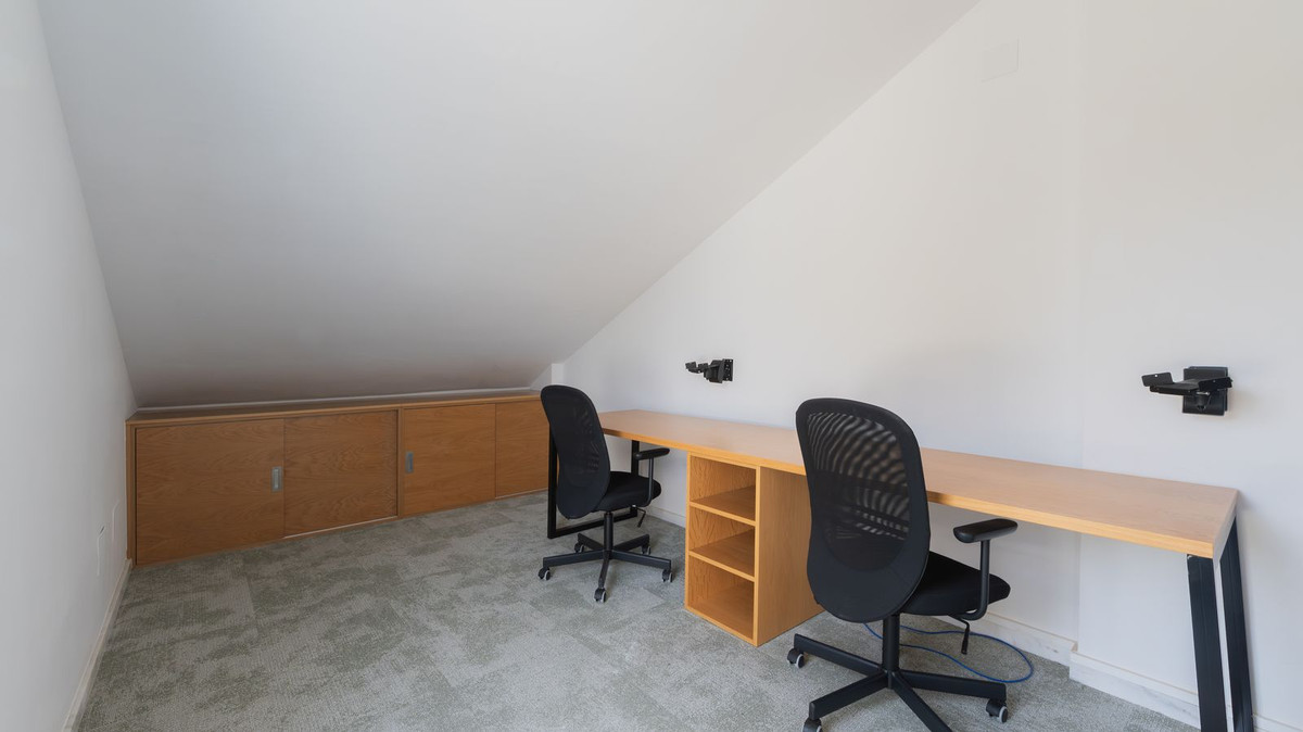 The closed garage accommodates two vehicles, includes an electric car charging point, and provides direct access to the interior of the house from the basement, offering extra convenience. Pedestrian access to the property is via a private street with an exterior gate, ensuring total privacy.