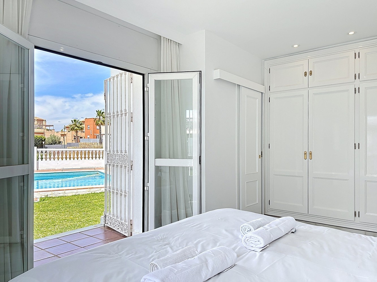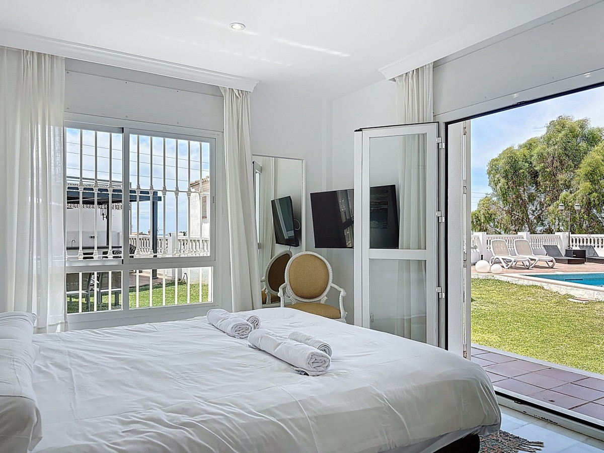 This beautifully presented modern villa in Caleta de Vélez offers spacious living, stunning sea views, and excellent outdoor spaces, just minutes from the beach, marina, and golf course. On the main entrance level (first floor), you'll find a brand-new, fully fitted kitchen with a separate laundry room, a full bathroom, and an open-plan dining and living area that is exceptionally spacious. The living area opens onto a terrace with panoramic views of the sea. Thanks to its south-west orientation, the space enjoys abundant natural light throughout the afternoon and spectacular sunsets. The ground floor features two comfortable guest bedrooms, each with built-in wardrobes and direct access to the garden, along with a full bathroom. The master bedroom is more generous in size, also with built-in wardrobes, an en-suite bathroom, and garden access. The garden boasts a large swimming pool, approximately 12 by 6 metres, and a dedicated outdoor barbecue area, making it perfect for entertaining or relaxing in the sun. A basement level with its own bathroom provides flexible space that can easily be transformed into a gym, home office, second living room, children's play area, or even an independent apartment. The property also includes a private garage for one car, with additional off-street parking for two more vehicles. This villa combines modern comfort with a prime coastal location, making it an ideal full-time residence, holiday home, or investment property. Viewings are highly recommended. We are pleased to be able to present this dream property to you soon, either personally or via virtual viewing. Because this world is unique - just like our Axarquía. In Andalusia. On the Costa del Sol. Here, on the sunny side of life...