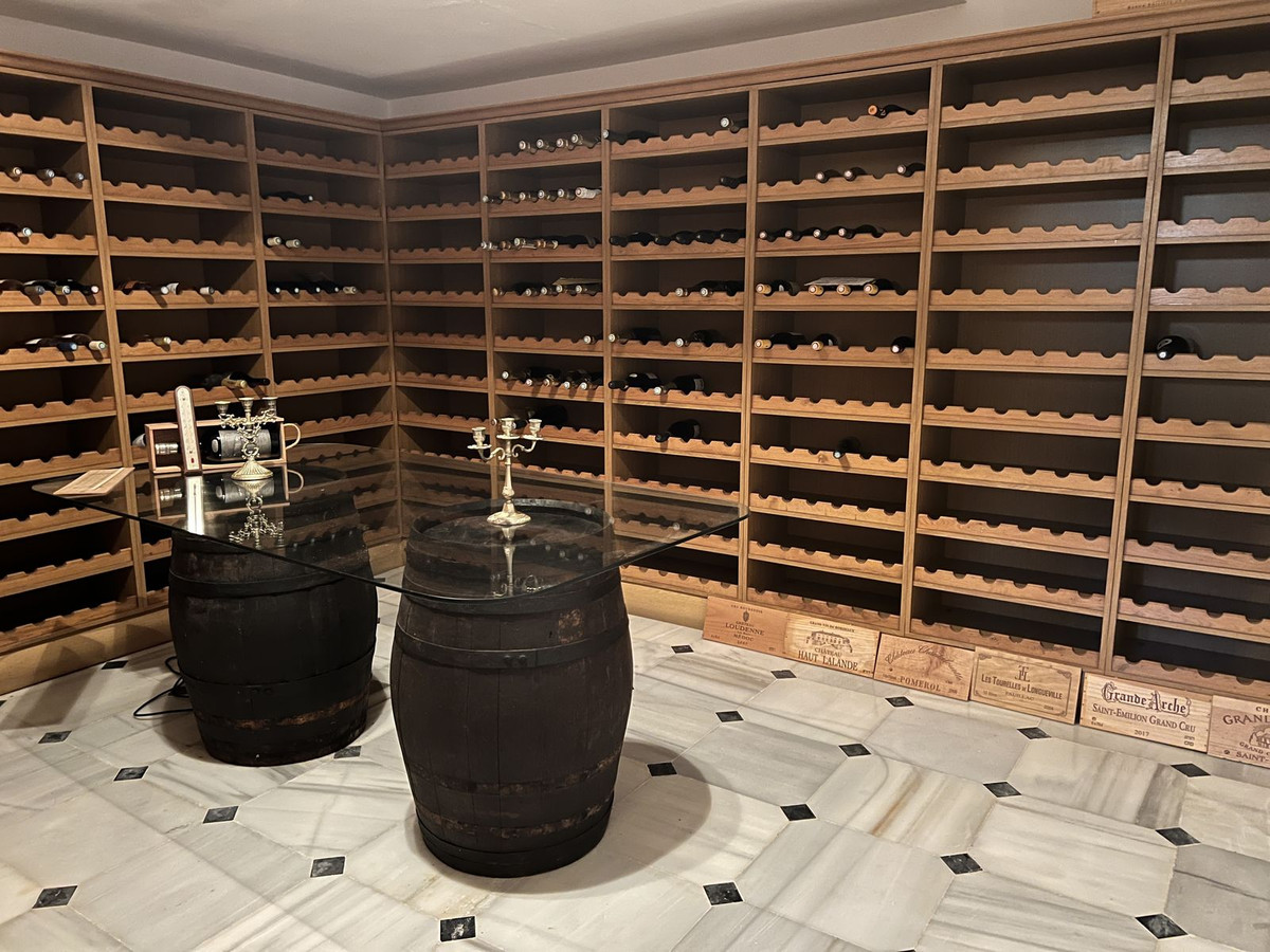 ✨ A basement entertainment area with a party room, wine cellar, bedroom, and toilet