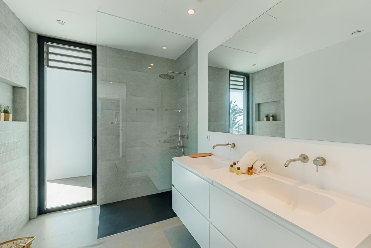 A stunning contemporary villa perfectly positioned on the beachfront of the New Golden Mile, offering spectacular panoramic views of the Mediterranean Sea. Surrounded by a generous private garden and featuring a large swimming pool, this exceptional property blends modern design with an unbeatable coastal location.