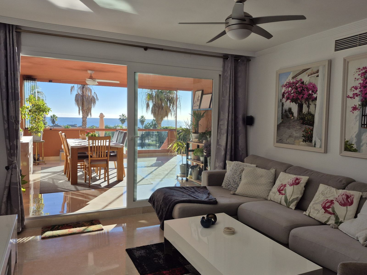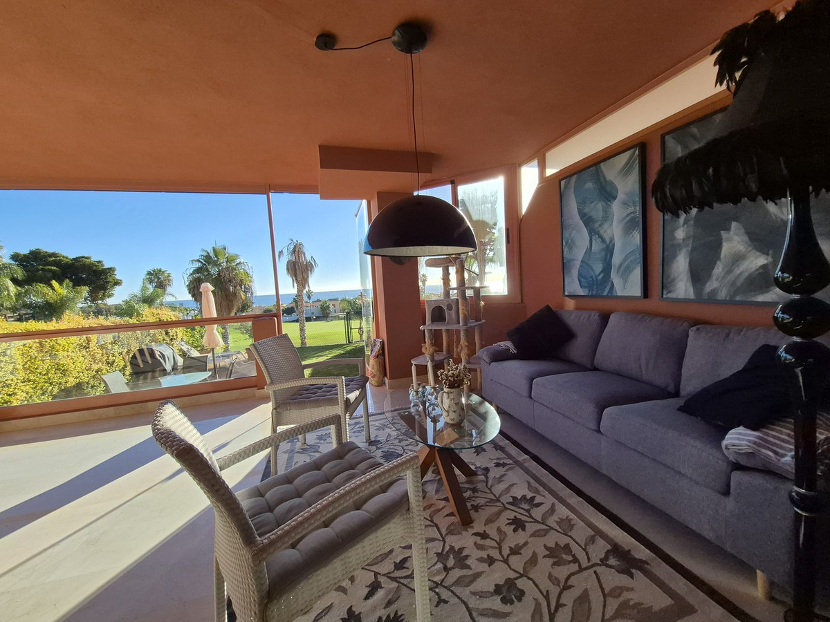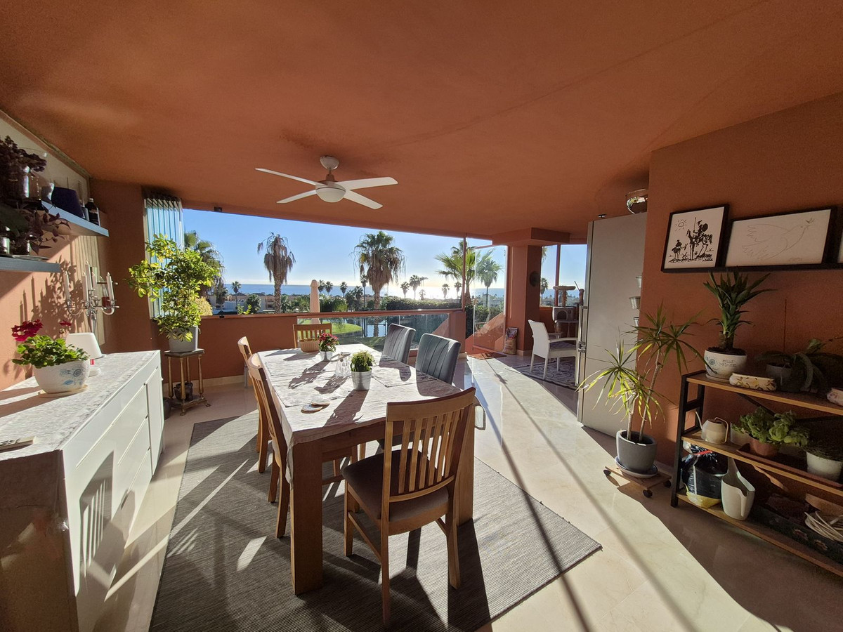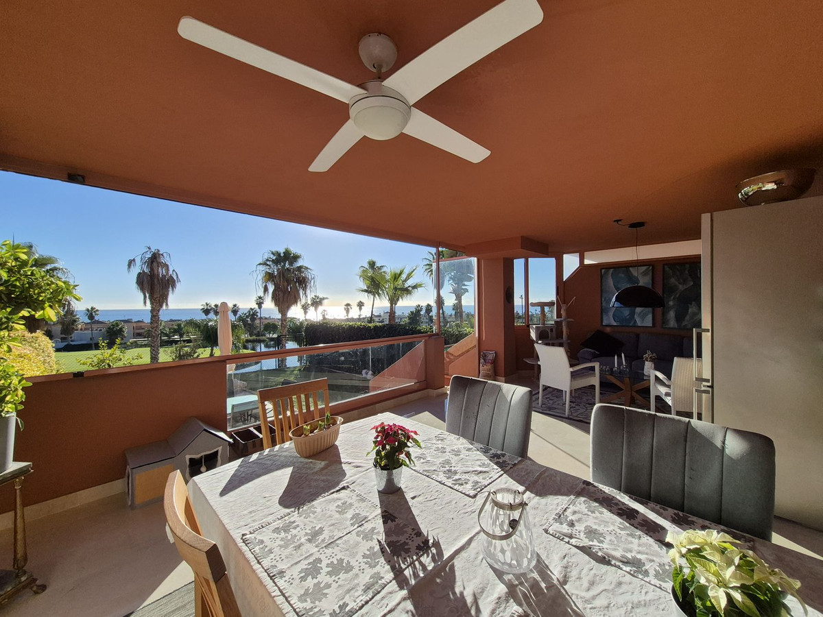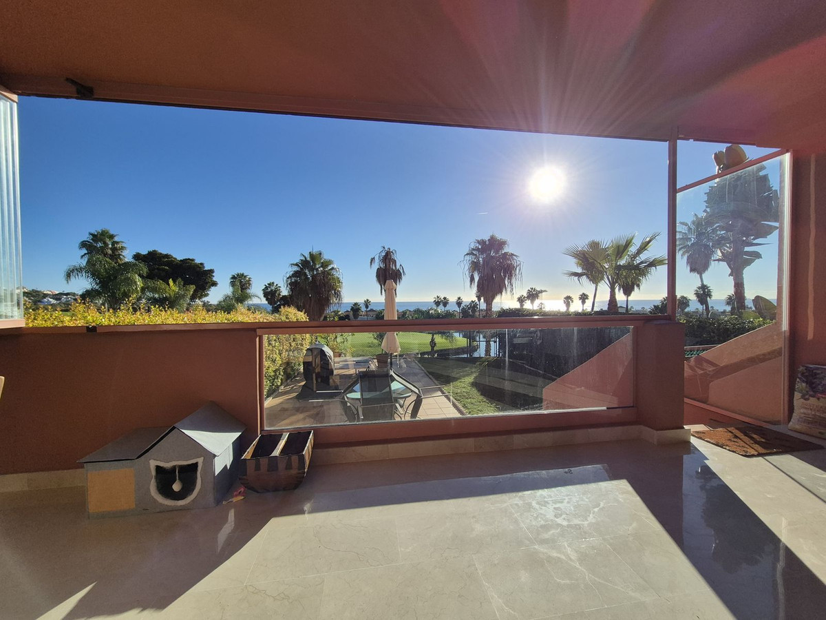 This is a wonderful ground-floor apartment set right on the frontline of Doña Julia Golf, enjoying truly beautiful open sea views.