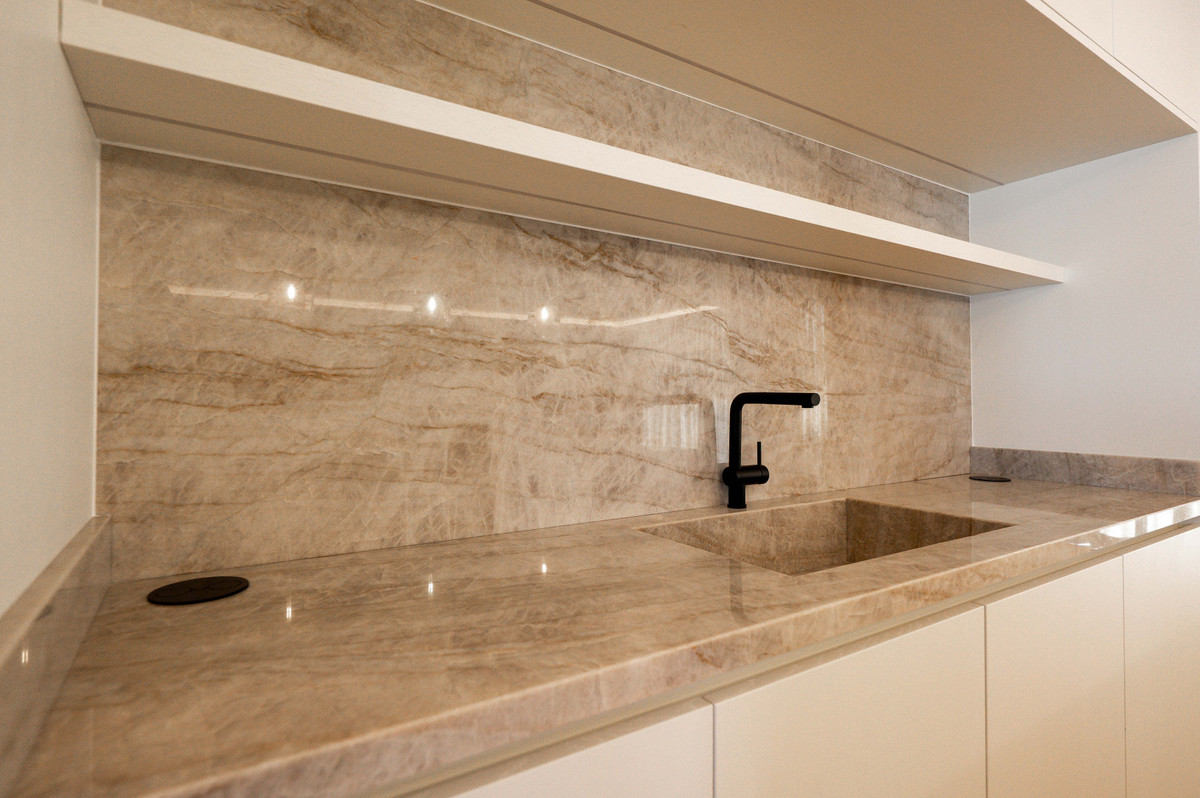 Offering approximately 270 sqm of refined interior living space, complemented by nearly 200 sqm of terraces, including a sundeck with green and sea views, this villa is thoughtfully designed for comfortable family living and sophisticated outdoor entertaining. The main floor features a bright and open-plan layout that seamlessly connects the kitchen, dining, and living areas. The interiors are styled in a neutral palette with elegant wood accents, creating a harmonious blend of modern design and natural warmth. Floor-to-ceiling glass panels on both façades flood the space with natural light and provide a striking line of sight from the entrance hall through to the terrace and beyond.