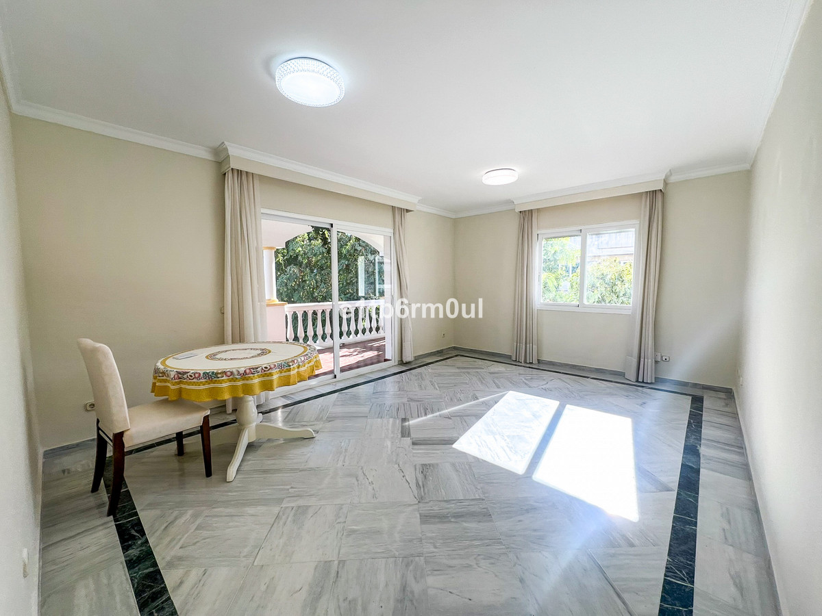 MARBELLA GOLDEN MILE • WEST FACING • WITHIN WALKING DISTANCE TO THE BEACH AND ALL AMENITIES • Superb well-situated West-facing two bedroom apartment on the desirable Marbella's Golden Mile, within walking distance to the beach and an array of amenities such as supermarkets, restaurants, shops and transports facilities. The fully gated complex offers well-maintained tropical gardens, large swimming pool, paddle court and lifeguard during the summertime. The bright apartment comprises: entrance hall with cloak room, living/dining room with access to the afternoon sun terrace, master bedroom en suite, guest bedroom, separate bathroom and a fully fitted kitchen with adjoined utility room. Features include: an underground car parking space, A/C H+C, marble floors throughout. Perfect as a holiday home, permanent residence or investment, in a quiet complex without road noise and yet, close to the buzz of Marbella's beaches along the Golden Mile.