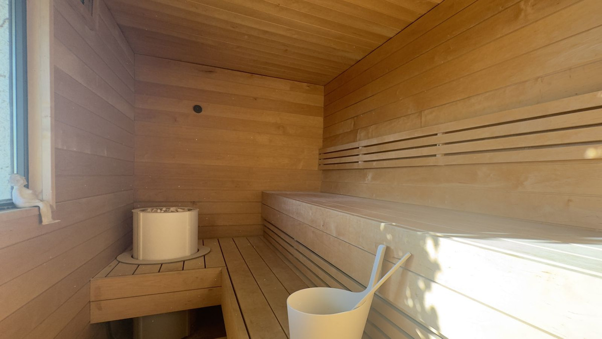 The lowest floor is dedicated to tranquillity and wellness. Here you will find a soothing sauna, a comfortable living room and a private bedroom. Direct access leads to a landscaped garden where a welcoming jacuzzi awaits—an intimate outdoor haven set against cinematic Mediterranean vistas.
